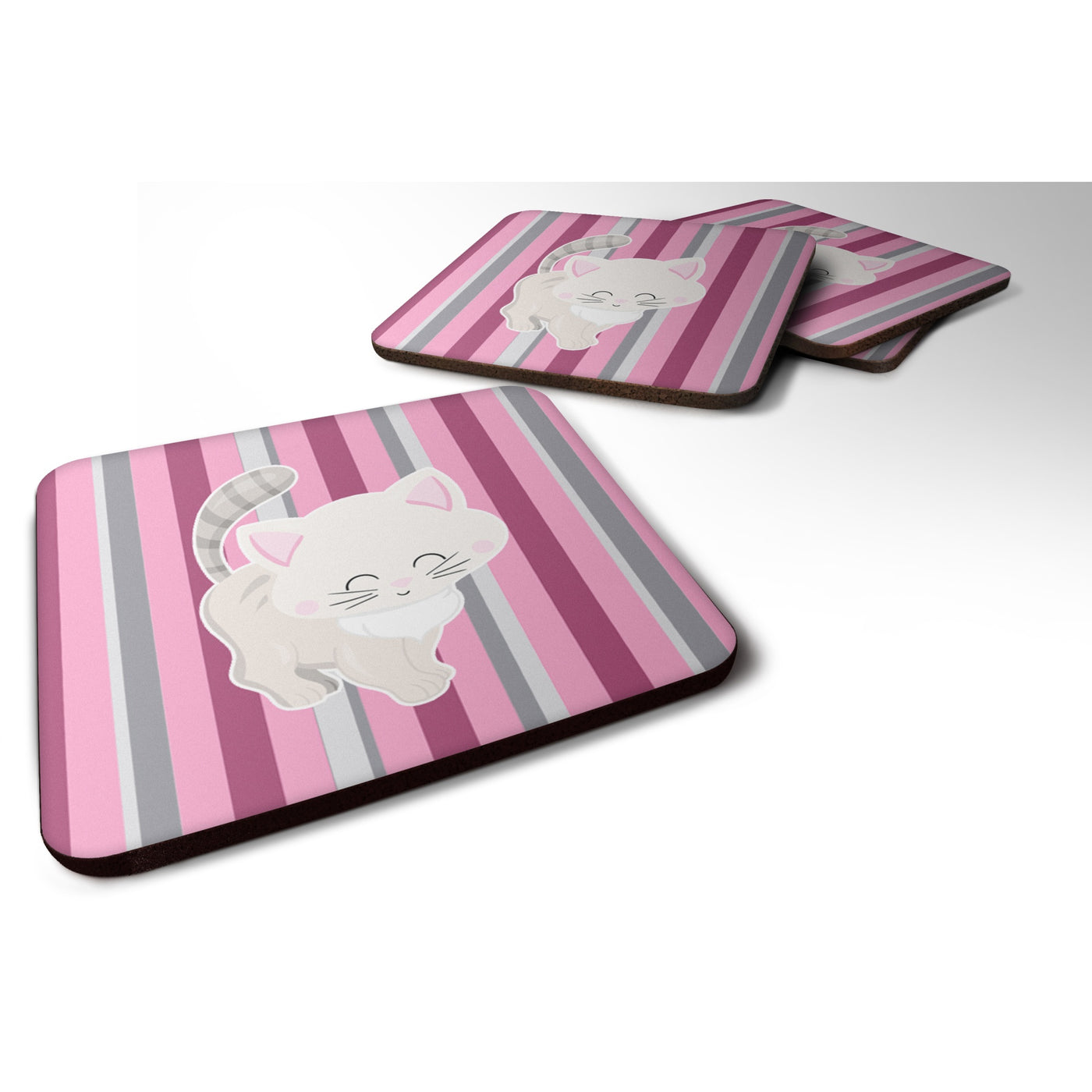 'Caroline's Treasures Kitten Cat Pink & Gray Foam Coaster Set of 4 3.5 Multicolor''