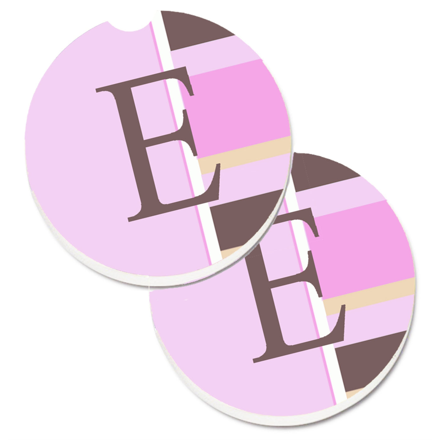 'Caroline's Treasures Letter E Initial Monogram - Pink Stripes Set of 2 Cup Holder Car Coasters CJ1005-ECARC 2.56 Multicolor''