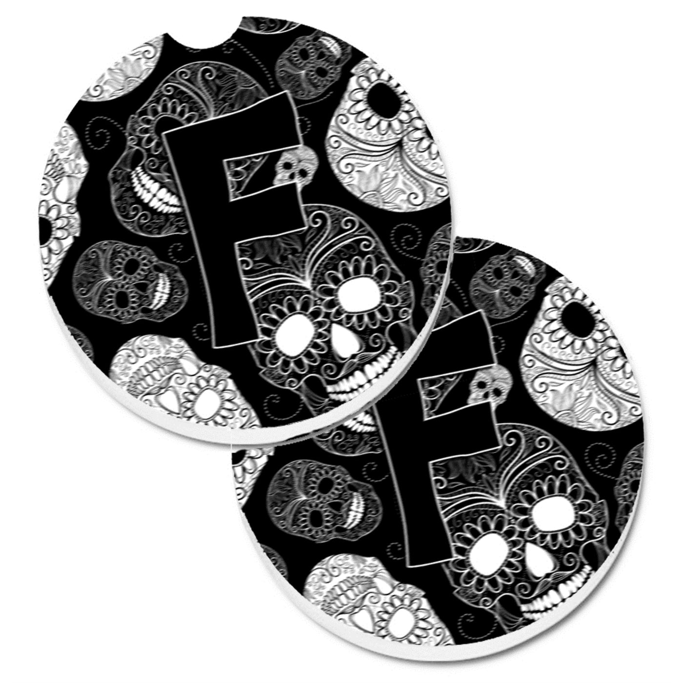 'Caroline's Treasures Letter F Day of The Dead Skulls black Set of 2 Cup Holder Car Coasters CJ2008-FCARC 2.56 Multicolor''