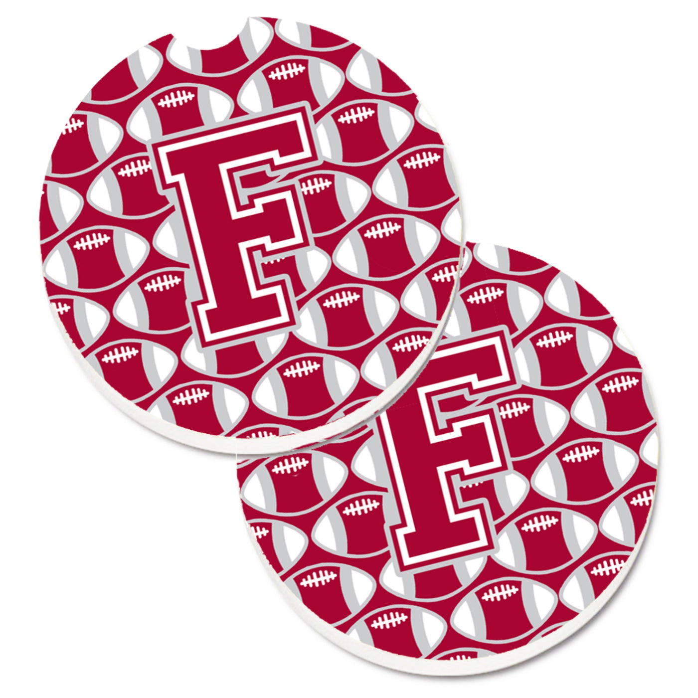 'Caroline's Treasures Letter F Football Crimson Grey & White Set of 2 Cup Holder Car Coasters CJ1065-FCARC 2.56 Multicolor''