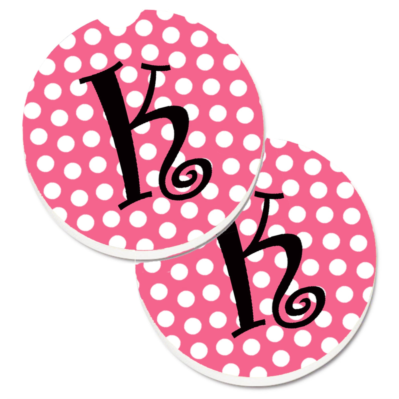 'Caroline's Treasures Letter K Monogram - Pink black Polka Dots Set of 2 Cup Holder Car Coasters CJ1001-KCARC 2.56 Multicolor''