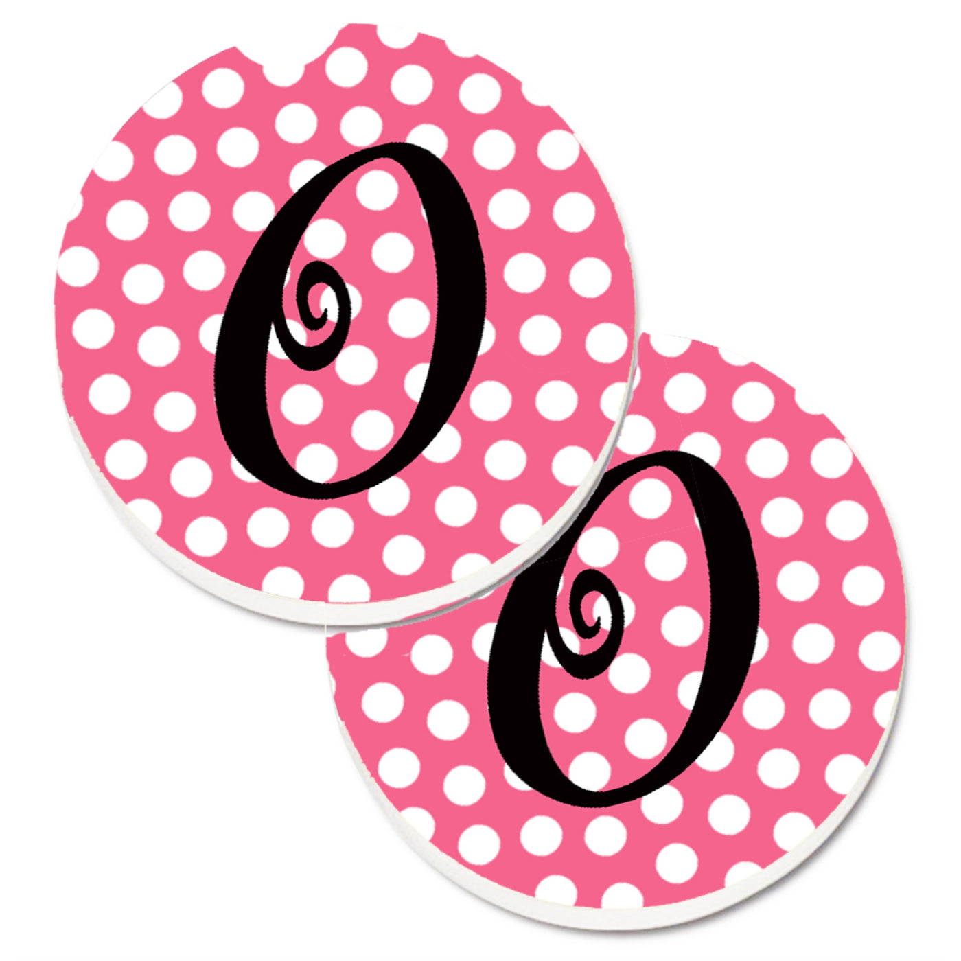 'Caroline's Treasures Letter O Monogram - Pink black Polka Dots Set of 2 Cup Holder Car Coasters CJ1001-OCARC 2.56 Multicolor''