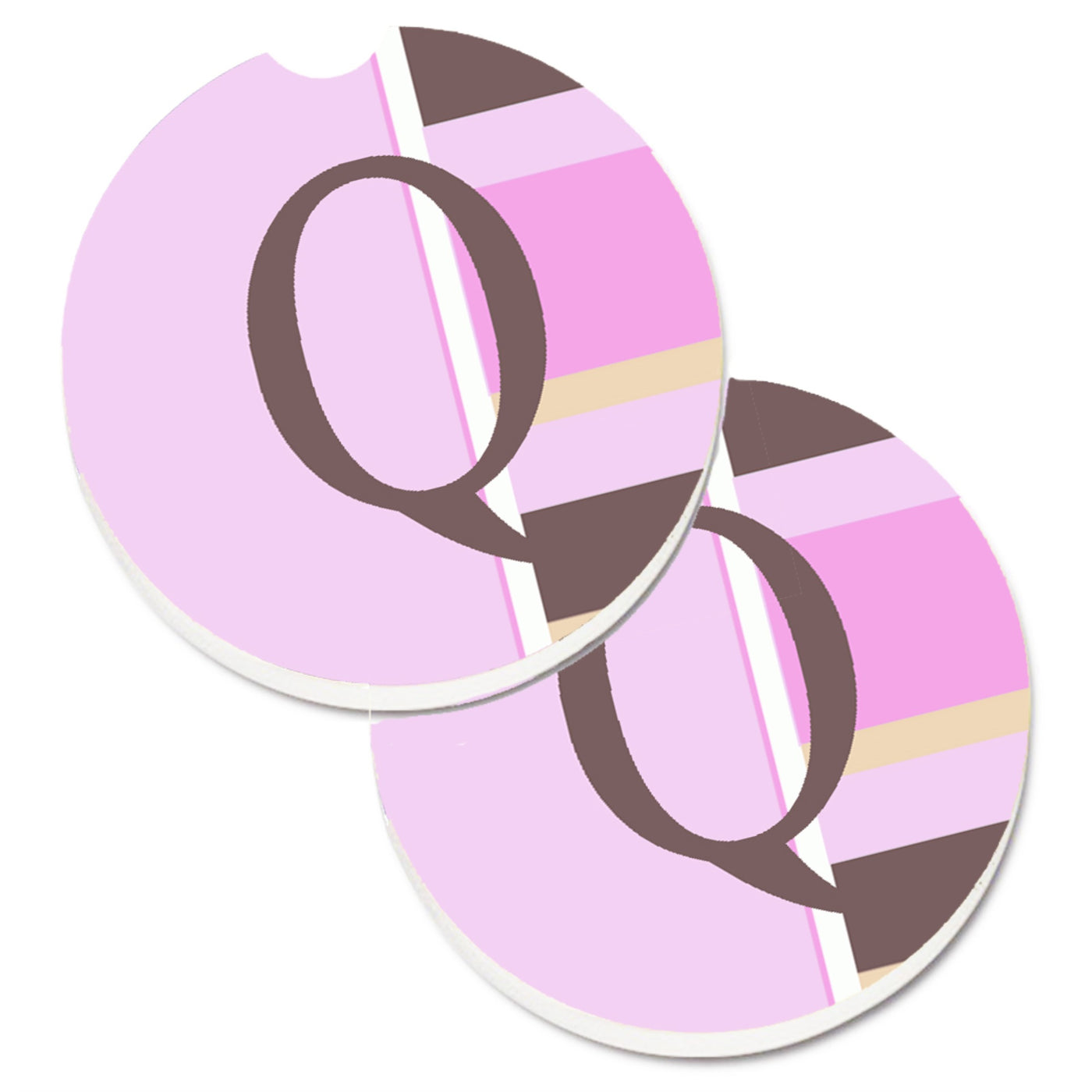 'Caroline's Treasures Letter Q Initial Monogram - Pink Stripes Set of 2 Cup Holder Car Coasters CJ1005-QCARC 2.56 Multicolor''