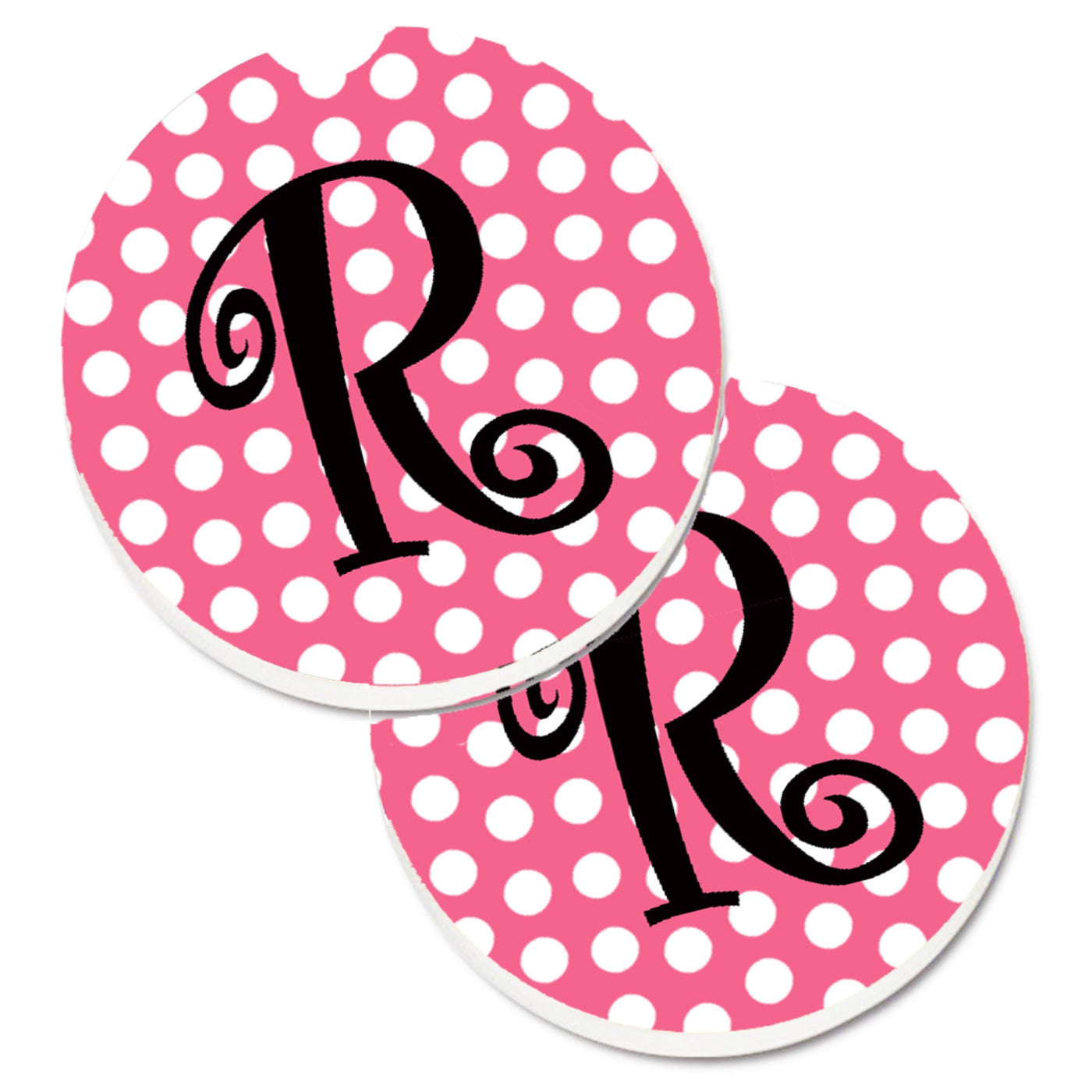'Caroline's Treasures Letter R Monogram - Pink black Polka Dots Set of 2 Cup Holder Car Coasters CJ1001-RCARC 2.56 Multicolor''