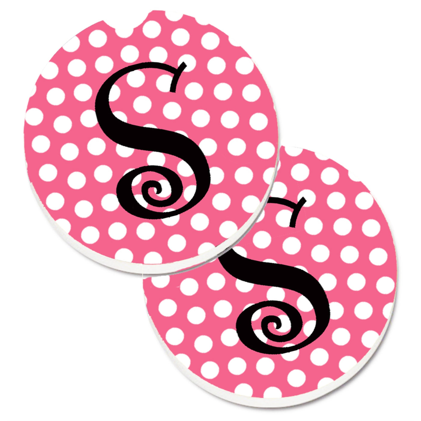 'Caroline's Treasures Letter S Monogram - Pink black Polka Dots Set of 2 Cup Holder Car Coasters CJ1001-SCARC 2.56 Multicolor''