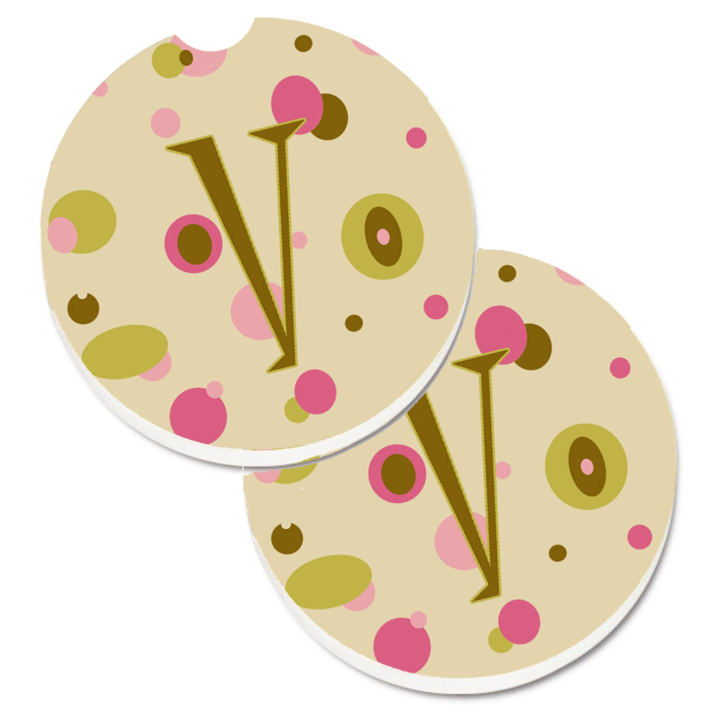 'Caroline's Treasures Letter V Initial Monogram - Tan Dots Set of 2 Cup Holder Car Coasters CJ1004-VCARC 2.56 Multicolor''