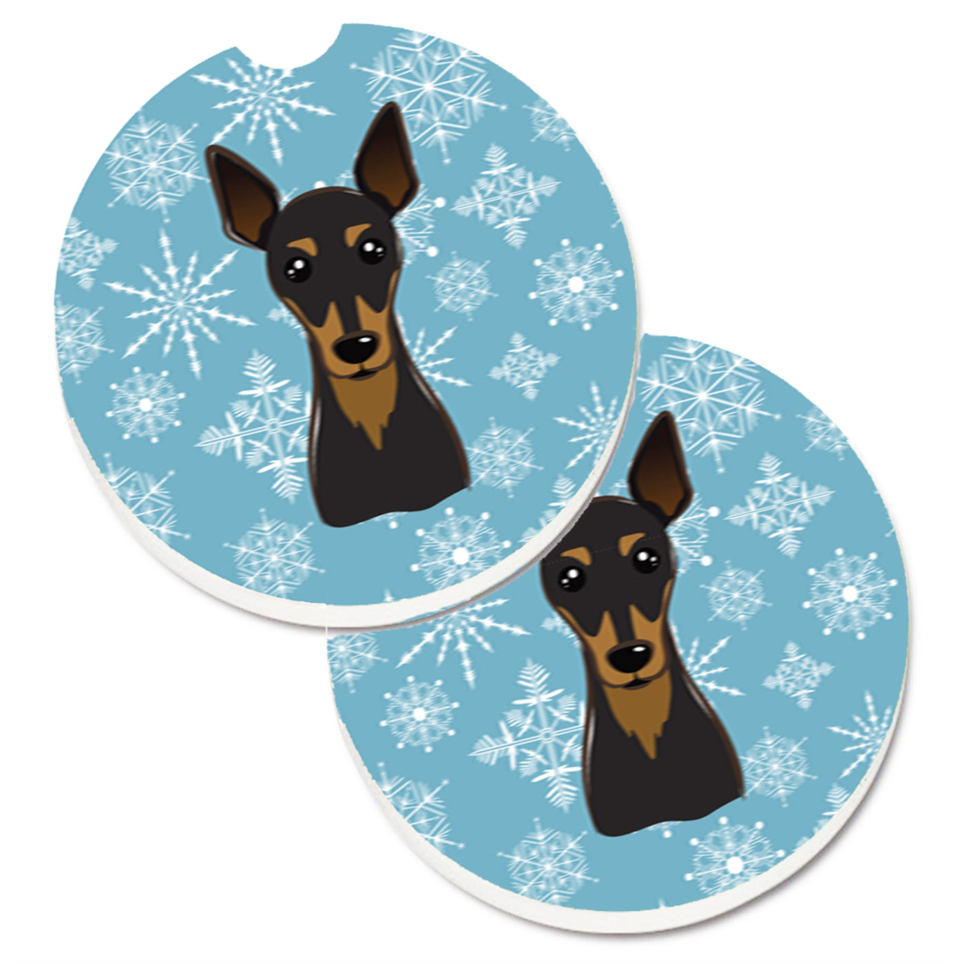 'Caroline's Treasures Snowflake Min Pin Set of 2 Cup Holder Car Coasters BB1674CARC 2.56 Multicolor''