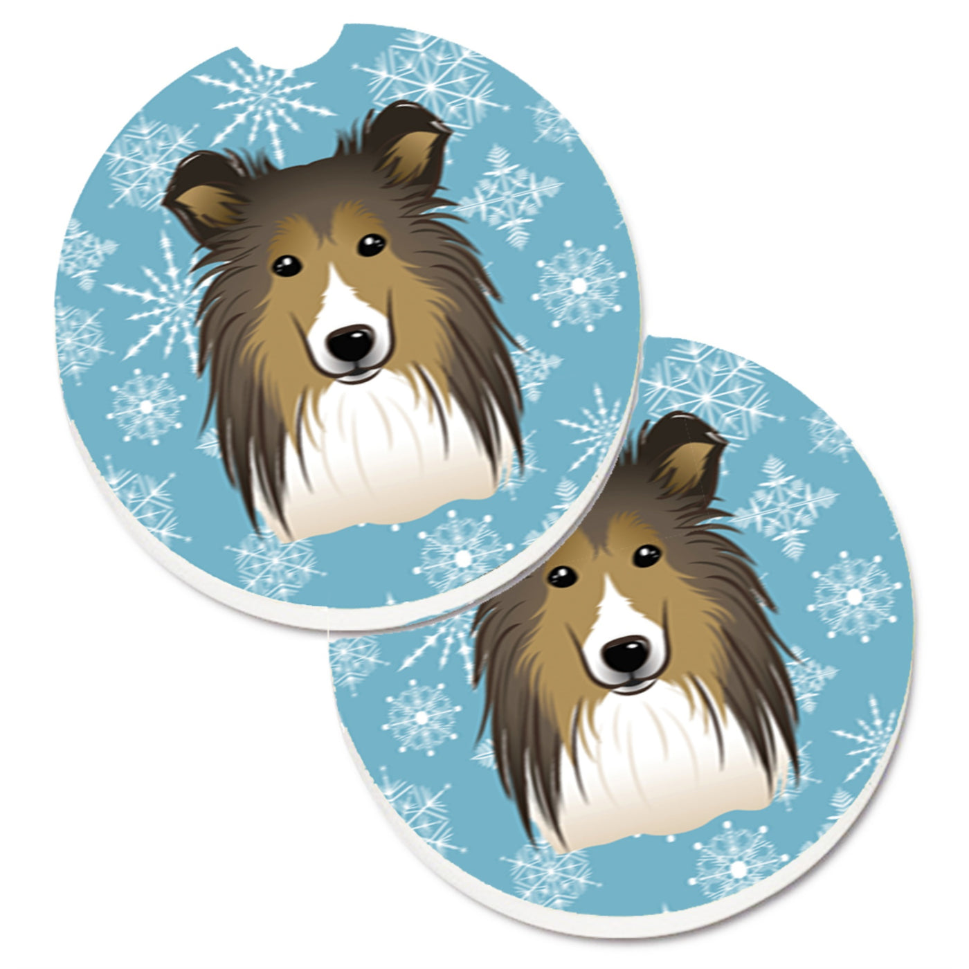 'Caroline's Treasures Snowflake Sheltie Set of 2 Cup Holder Car Coasters BB1676CARC 2.56 Multicolor''