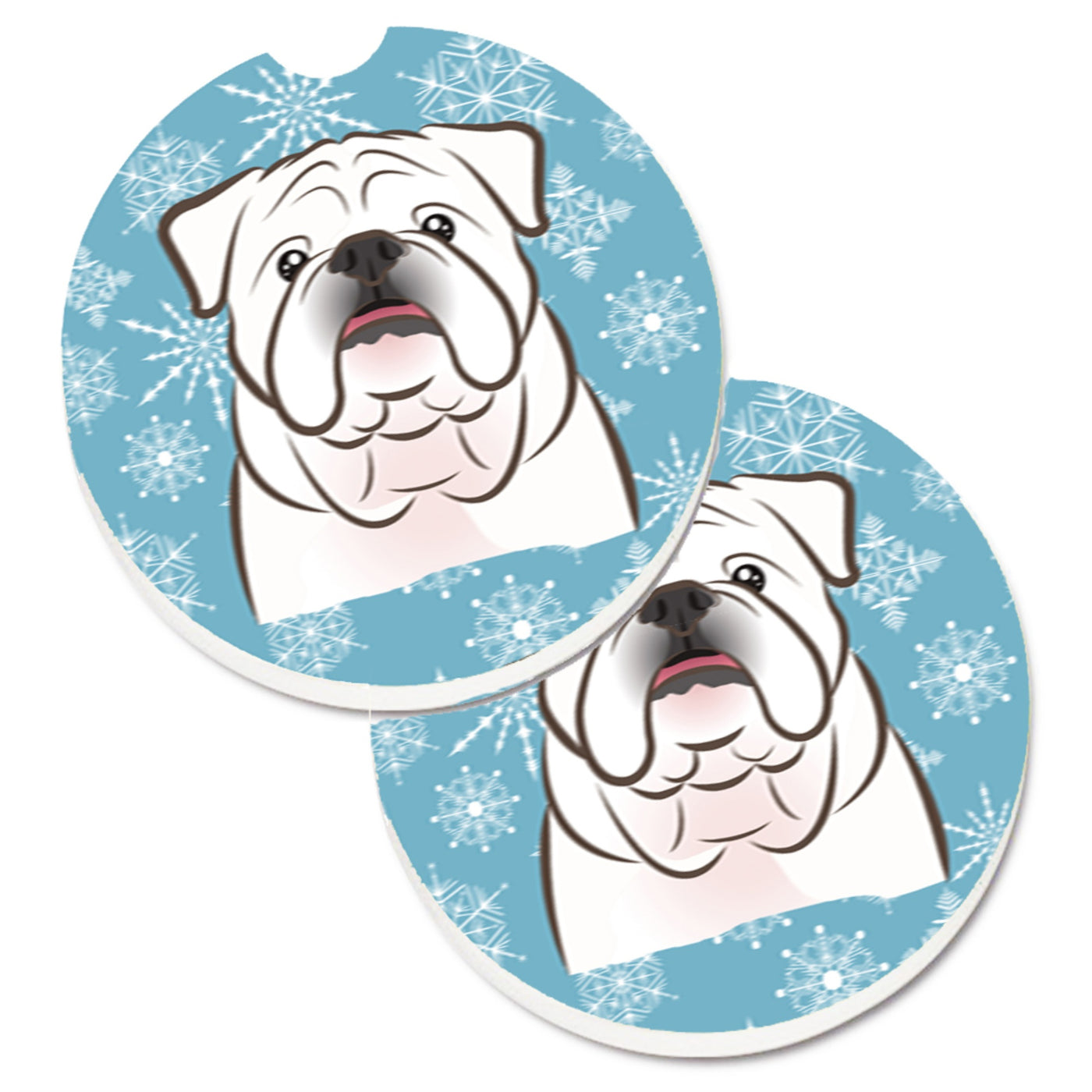 'Caroline's Treasures Snowflake White English Bulldog Set of 2 Cup Holder Car Coasters BB1654CARC 2.56 Multicolor''