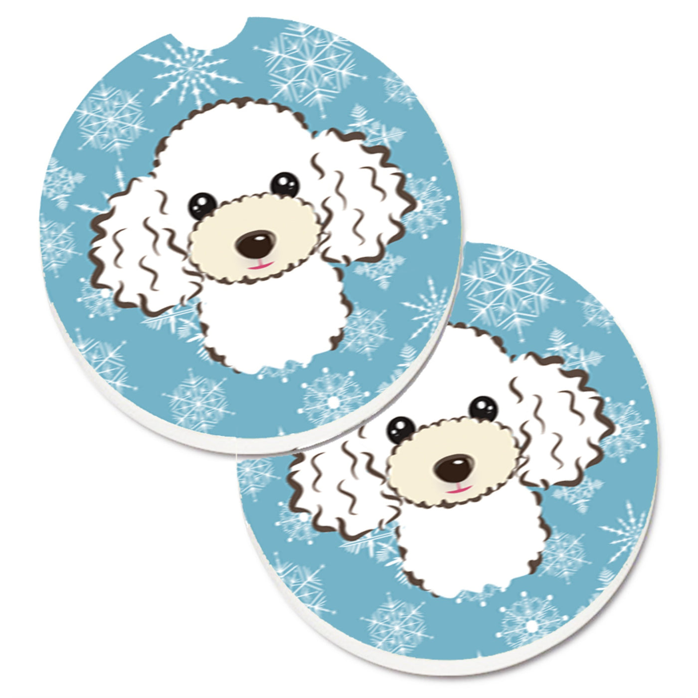 'Caroline's Treasures Snowflake White Poodle Set of 2 Cup Holder Car Coasters BB1691CARC 2.56 Multicolor''
