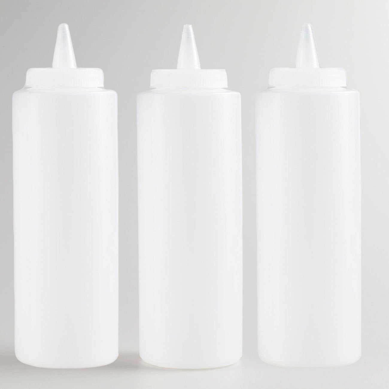 - Q: How do I clean these squeeze bottles? A: To clean the squeeze bottles, rinse them with warm soapy water or place them on the top rack of the dishwasher.