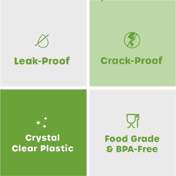 • Q: Are the lids leak-proof? A: Yes, the lids are designed to be leak-proof and feature an audible snap closure to ensure a secure seal.