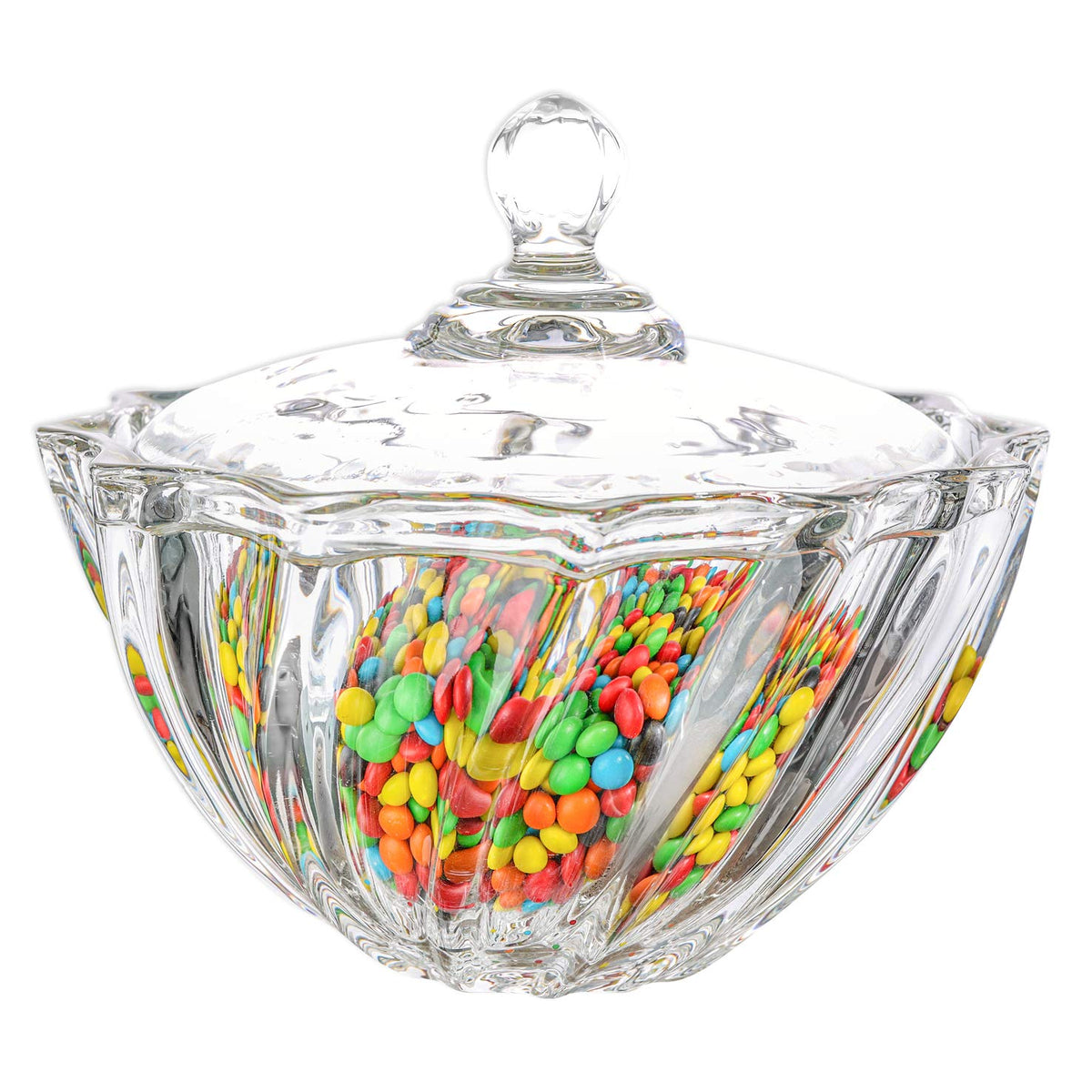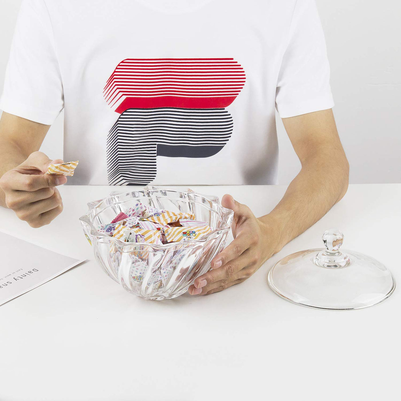 • Q: What is the size of the candy dish? A: The candy dish features a convenient size suitable for holding both small and large-sized wrapped or unwrapped candies, chocolate, cookies, nuts, fruits, trinkets, and even jewels.