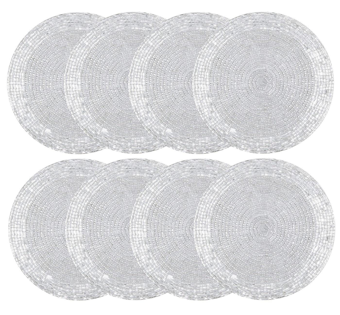 - Q: What materials are the coasters made from? A: The coasters are made from metallic glass beads with a polyester backing.