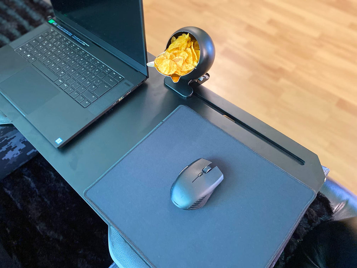 • Q: How does the clamp function work on the nerdytray? A: The clamp function securely attaches the nerdytray to your Couchmaster, ensuring stability and preventing it from slipping during use.