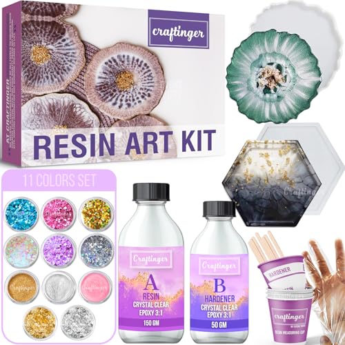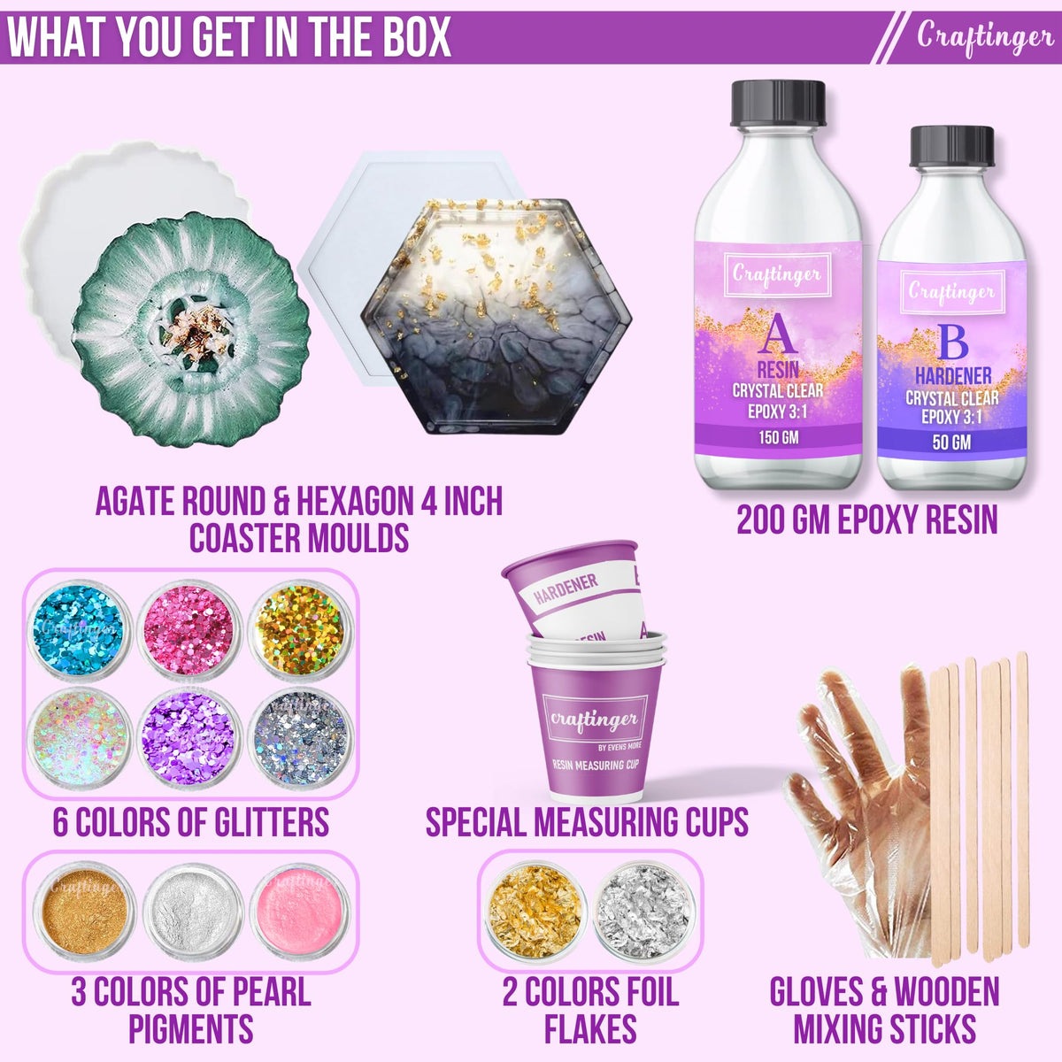 Craftinger Diy Resin Coaster Kit With 200Gm Epoxy Resin Moulds And More, Multicolor