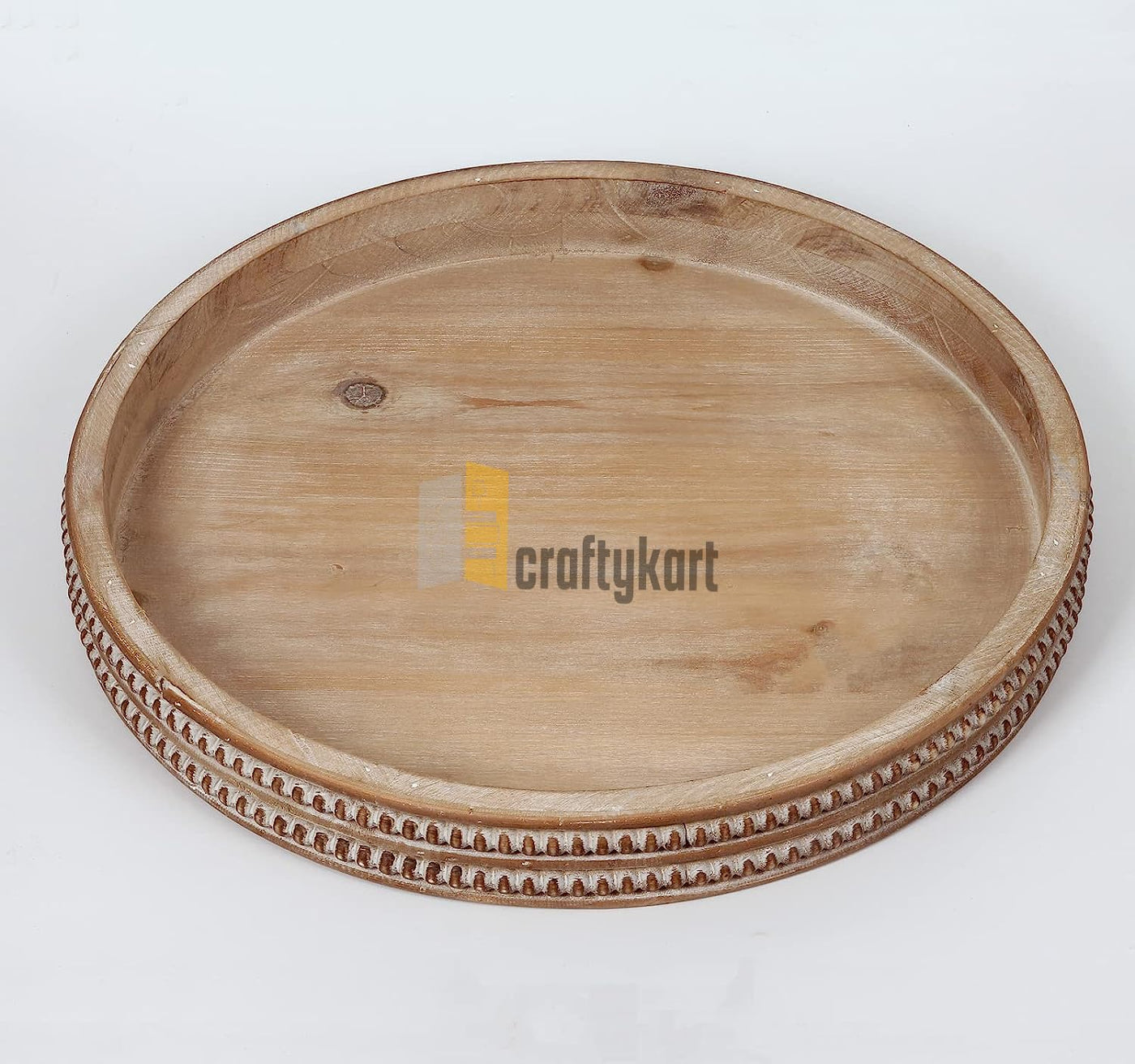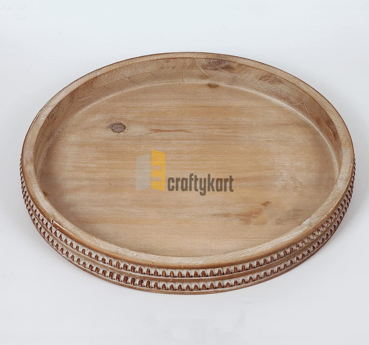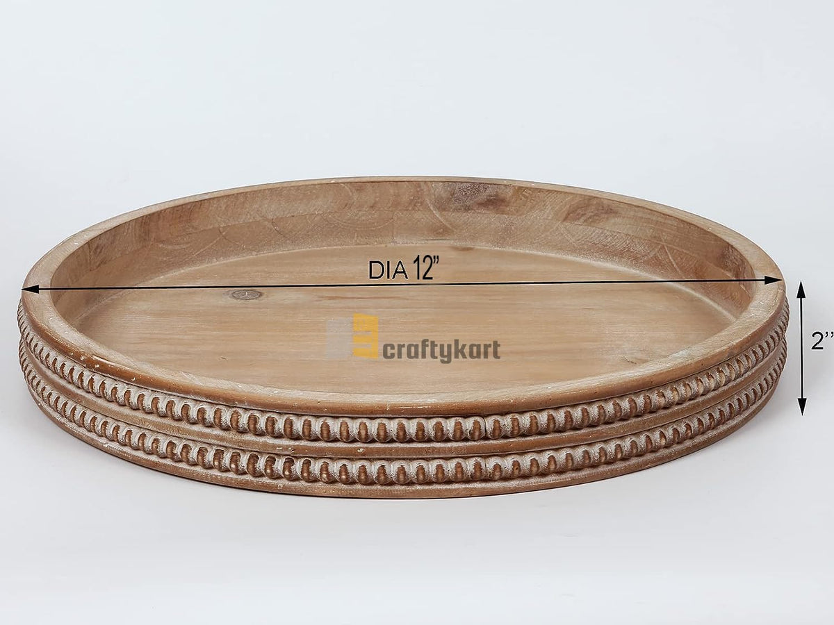 CRAFTYKART Round Wooden Serving Tray, Whitewashed Round Decorative Wood Tray, Round Farmhouse Rustic Decorative Tray, Perfect fo