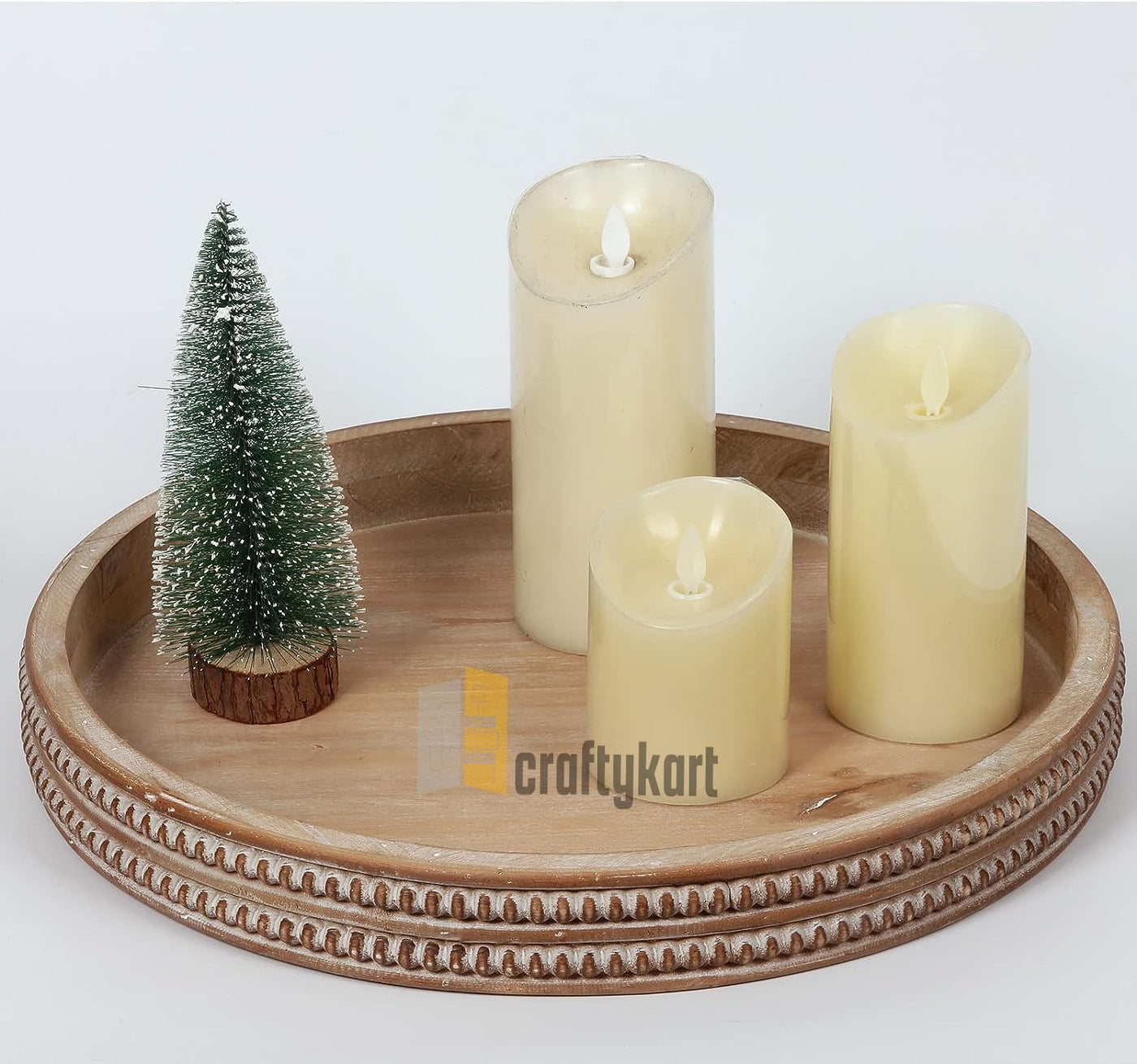 CRAFTYKART Round Wooden Serving Tray, Whitewashed Round Decorative Wood Tray, Round Farmhouse Rustic Decorative Tray, Perfect for Storage,Display a Small Candle (Brown)