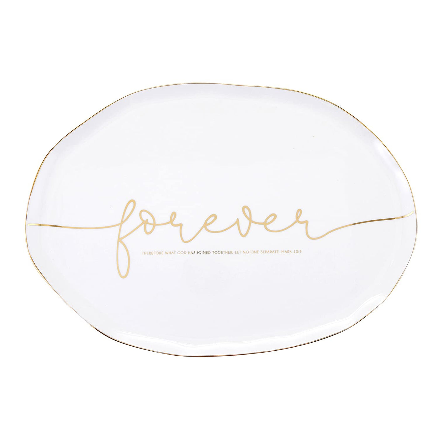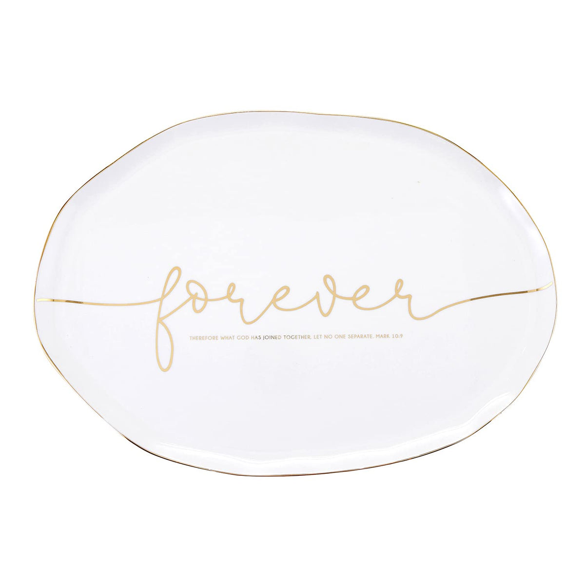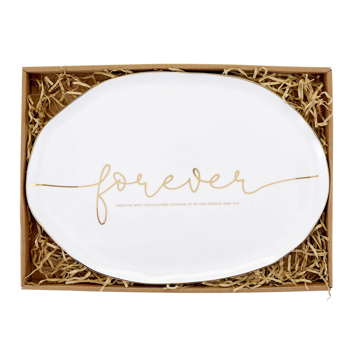 Creative Brands Faithworks-Wedding Collection Inspirational Ceramic Serving Platter, 14 X 10-Inch, Forever