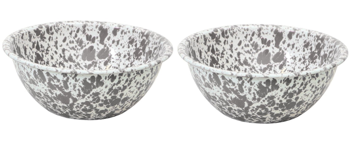 • Q: How should I care for the enamelware bowls? A: These bowls are dishwasher safe; however, do not leave them in standing water and avoid using abrasive cleaners.