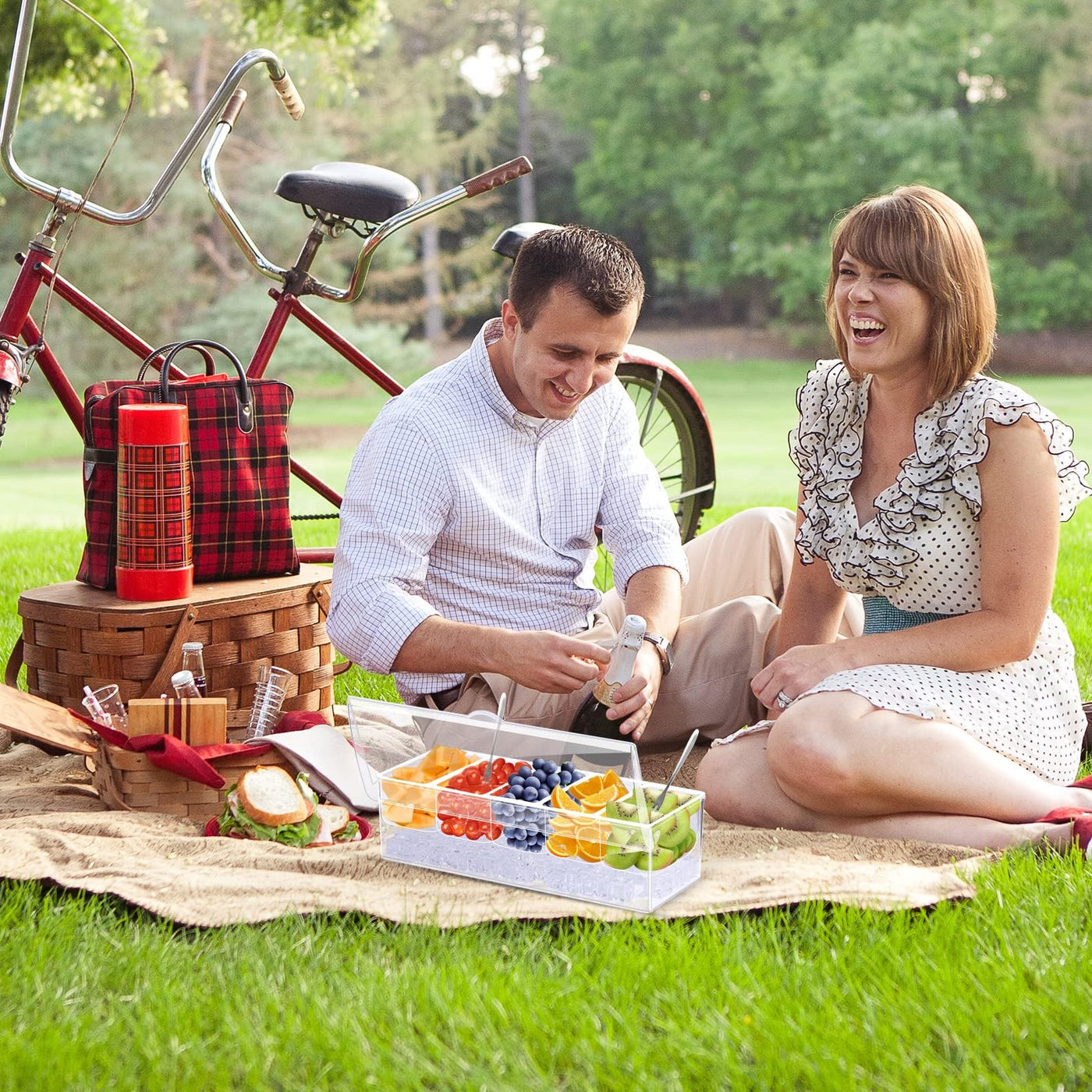 • Q: How can I keep the food fresh in the server? A: To keep the food fresh, fill the bottom compartment with ice cubes or crushed ice, and store the condiments or fruits in the removable top compartments.