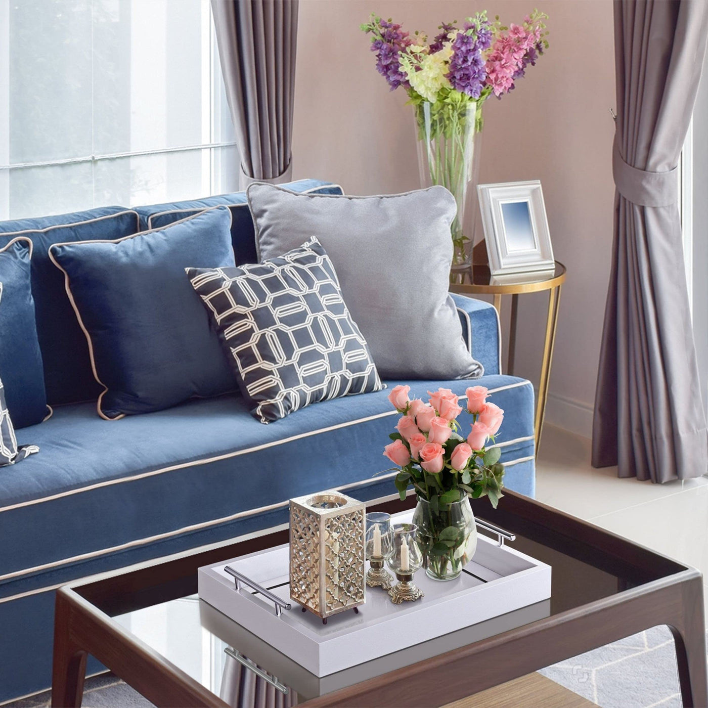 Deluxe Tray For Coffee Table - Beautiful White Tray Decor, White Coffee Table Tray Decor, White Serving Tray With Silver Metal H