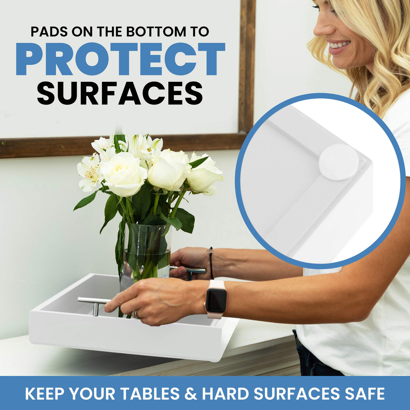 - Q: What colors does the tray come in? A: The tray is available in a beautiful white with silver metal handles, suitable for various decor styles.