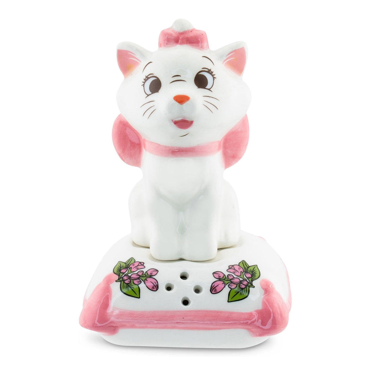 • Q: What is included in the Disney The Aristocats Marie salt and pepper shaker set? A: The set includes two ceramic canisters: one featuring Marie, the charming cat, and the other designed as a decorative pink throw pillow.