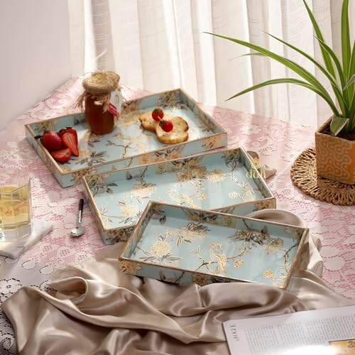 Duli Set Of 3 Mdf Wood Trays Enamel Coated| Rectangle Trays Set Of 3 | Serving Trays | Wooden Tray | Kitchen&Dining Decorative |