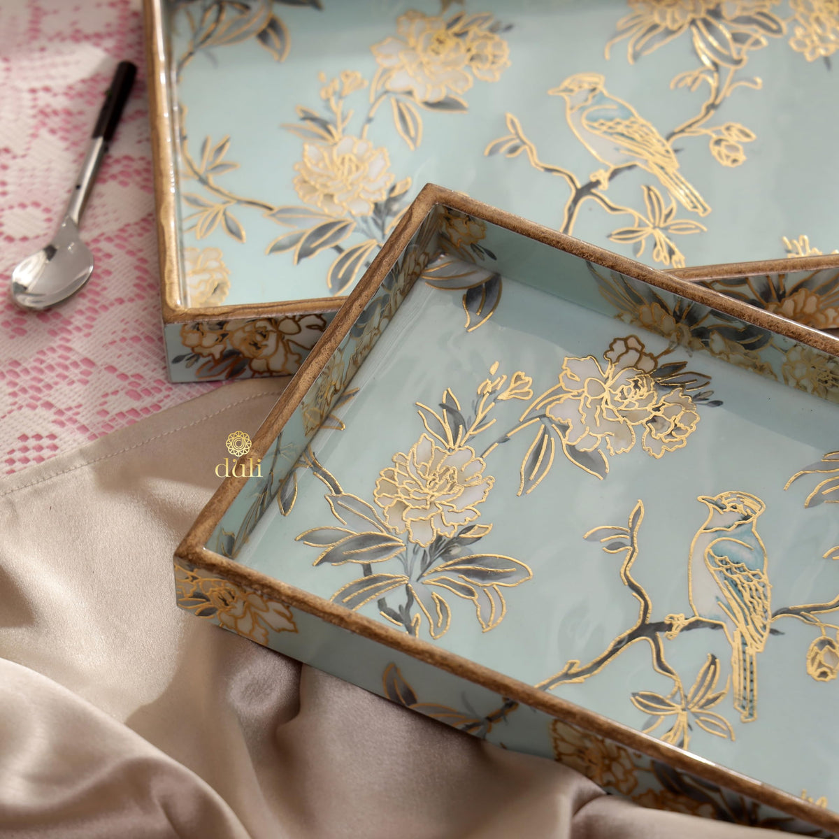 Introducing Our Exquisite Set Of 3 Small Trays, Meticulously Crafted From Durable Mdf And Adorned With A Captivating Lacquered Coating Featuring A Delicate Floral Print. Measuring 12X8X1 Inches And 11X7X1 And 10X6X1 Inches Respectively, These Trays Offer Both Functionality And Charm To Any Space They Grace. Designed To Withstand Water With Ease, TheyRe The Perfect Choice For Organizing And Serving In Style. Simply Wipe With A Damp Cloth For Effortless Cleaning, Avoiding Washing To Preserve Their Beauty. Whether Used For Serving Snacks, Displaying Decorative Pieces, Or Organizing Accessories, These Trays Add A Touch Of Sophistication To Any Setting. Elevate Your Dcor With The Timeless Allure Of Our Small Round Trays, Where Practicality Meets Elegance Seamlessly.