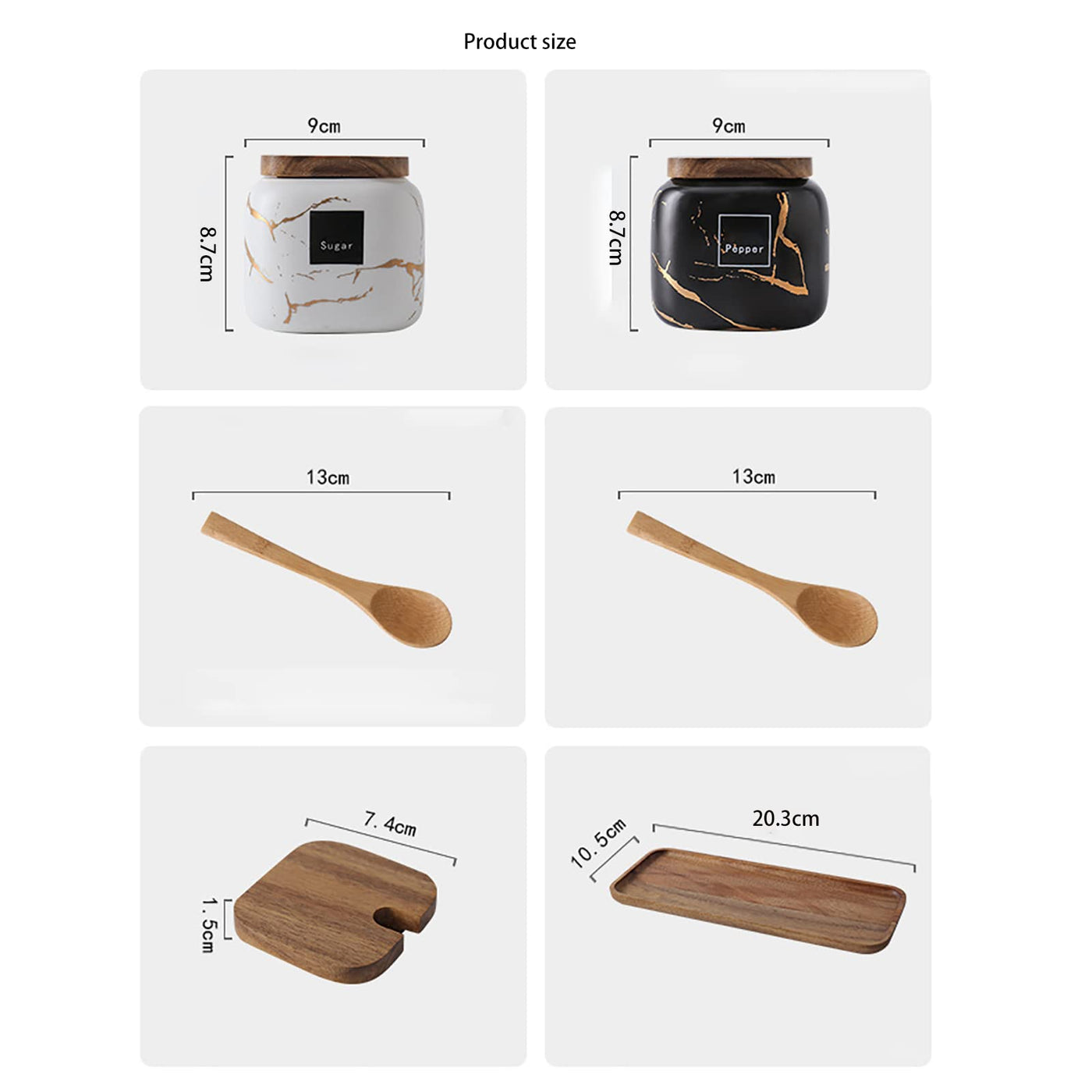 - Q: What is included in the package when I purchase this product? A: The package includes two ceramic seasoning jars, two wooden lids, two wooden spoons, and a wooden tray.