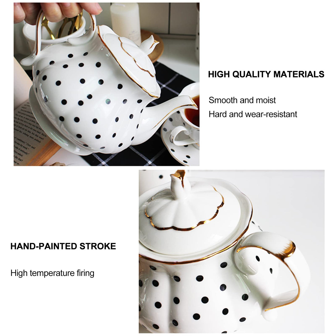 European Style Teapot Handmade Ceramic Teapot Pumpkin Fluted Shape Vintage Tea Party Set Gift (Polka Dot)