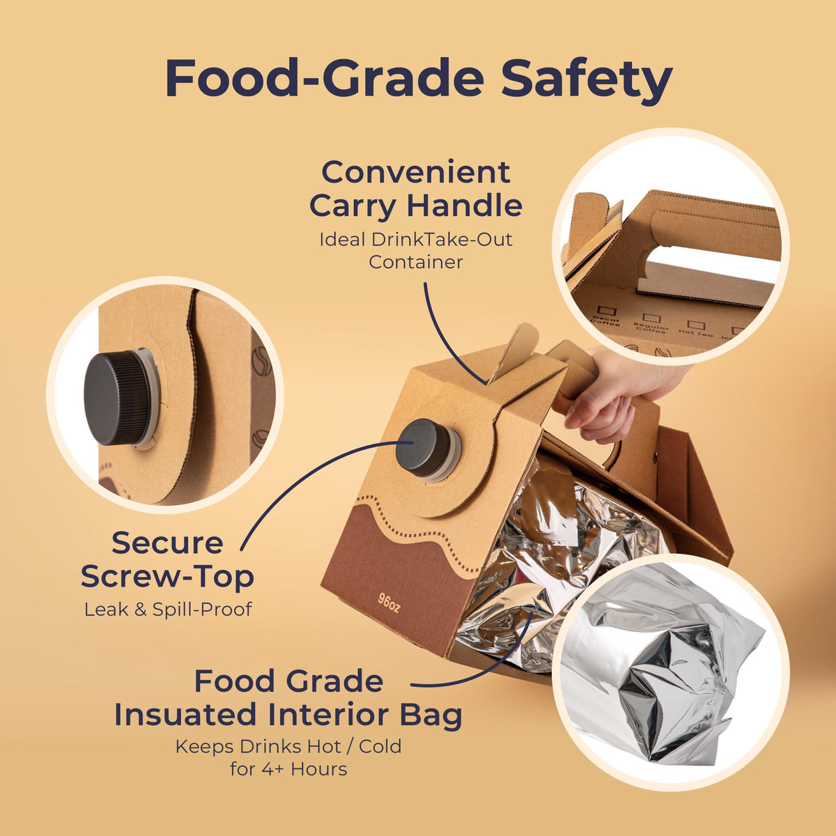 Fit Meal Prep 5 Pack 96 Oz Disposable Coffee Dispensers With Handle, Durable Insulated Coffee To Go Storage Containers, Portable