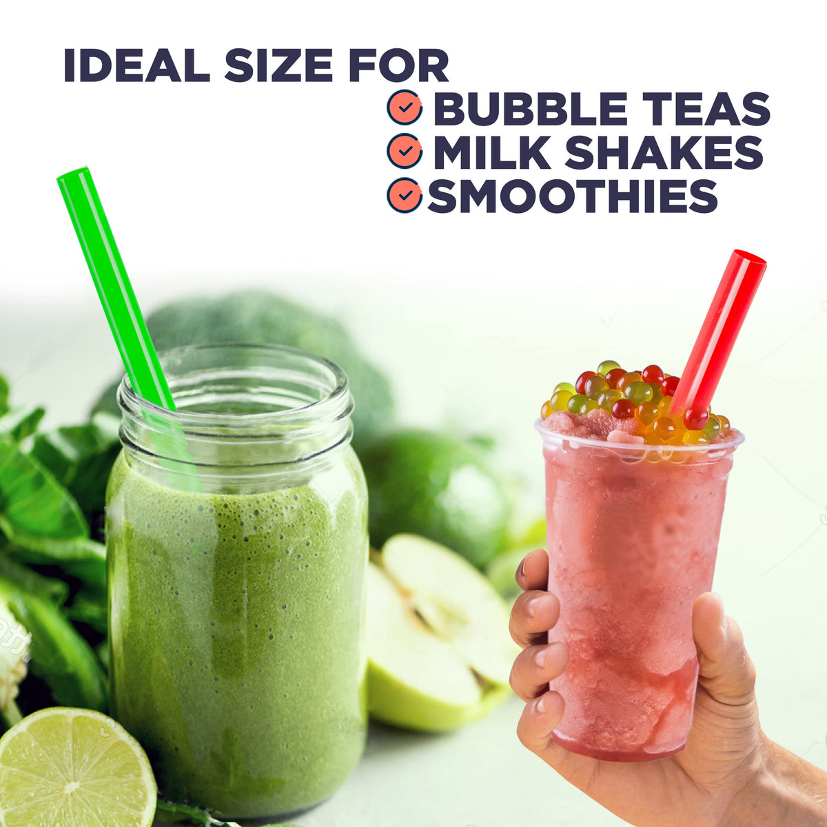 Fit Meal Prep 500 Pack Plastic Large Smoothie Straws 8'', Individually Wrapped Big Milkshake Straws, Bpa Free Disposable Jumbo S