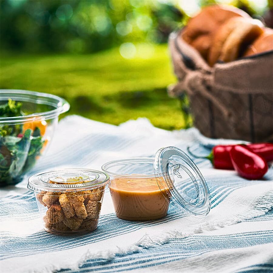 Green Direct 4 oz Disposable Jello Shot Cups With Lids | Condiment Containers with Lids Clear Plastic Cups with Lids | Salad Dressing Container To Go Souffle Portion Control Sauce Cups Pack of 100