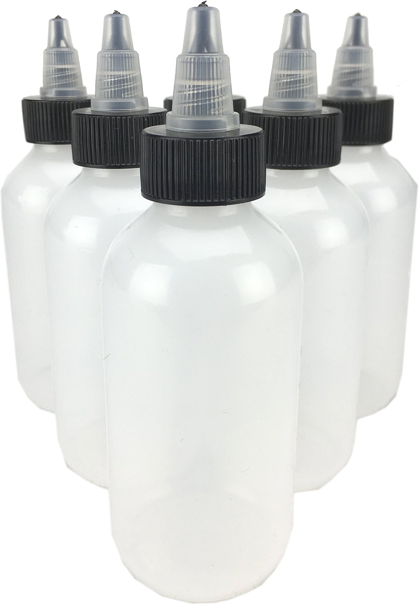 Hobbyland Squeeze Bottles, Ldpe Plastic Bottles, Natural Boston Round Bottles, Black And Natural Twist Caps (4Oz, 24/410 Neck, 6