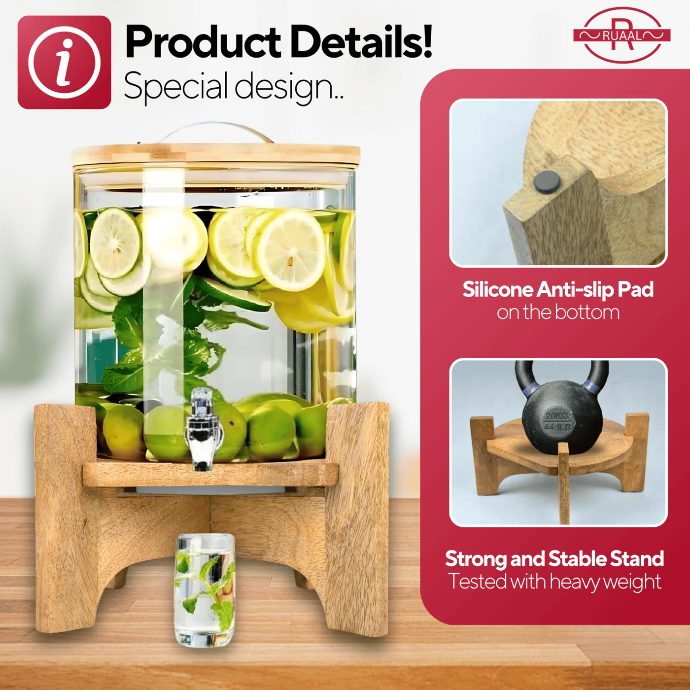 Home Storage Wooden Stand For Kitchen - Versatile Stand For Dispenser, Beverage Dispenser Stand, Durable Drink Dispenser Stand F