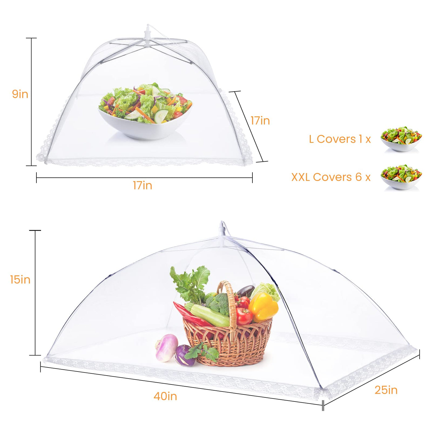 HOMKULA Food Covers for Outside - 2 Extra Large (40 x 25 in) & 6 Large (17 x 17 in) Food Tents/Food Covers for Outdoors Mesh Scr