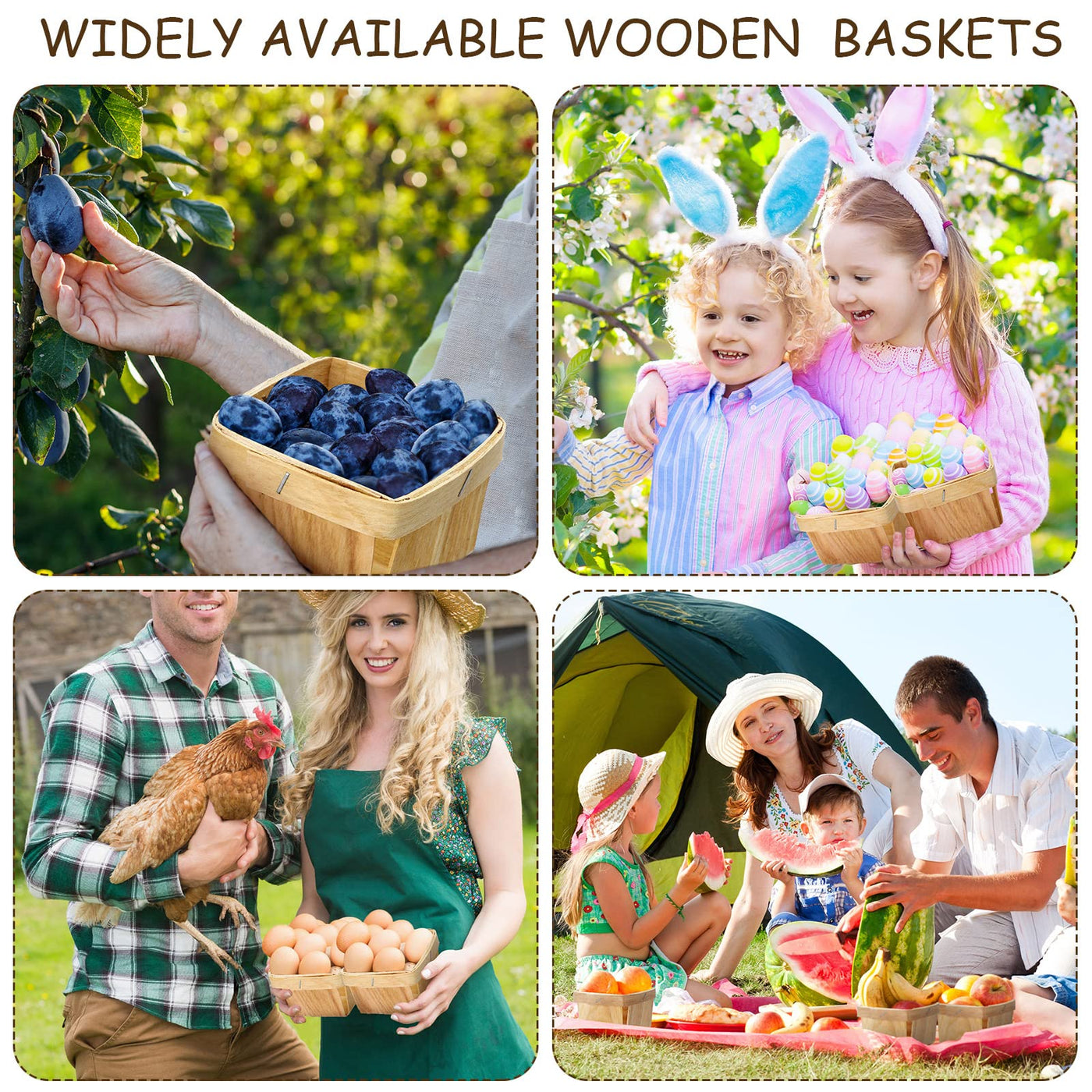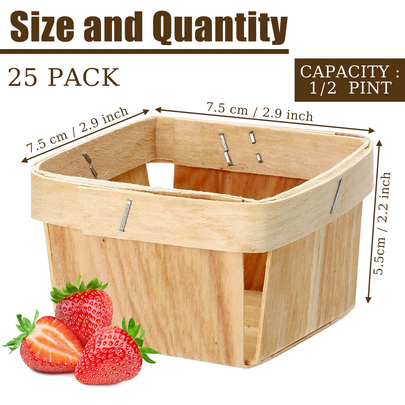Hoolerry 25 Pieces 1/2 Pint Wooden Gift Baskets 3 x 3 x 2.2 Inch Square Vented Wood Boxes Mini Berry Basket Bulk for Fruit Picki