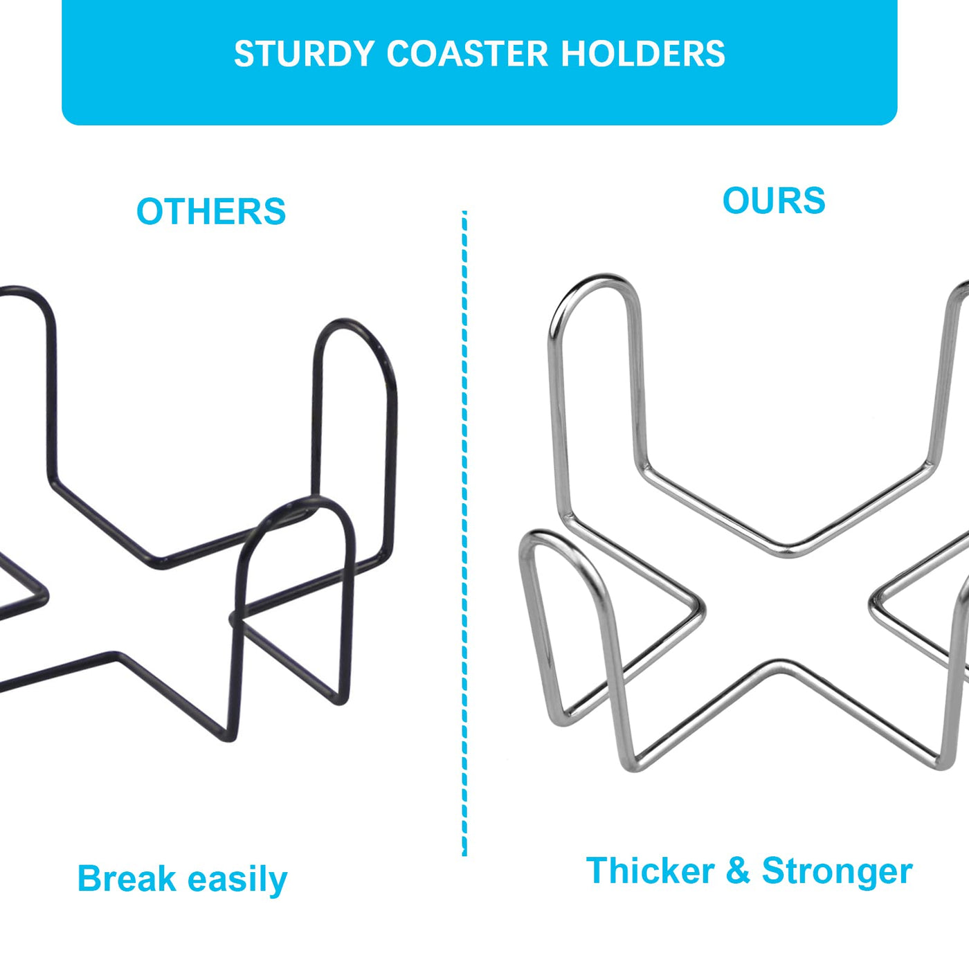 • Q: Is the coaster holder suitable for outdoor use? A: While the coaster holder is made of durable stainless steel, it is recommended for indoor use to maintain its appearance and longevity.