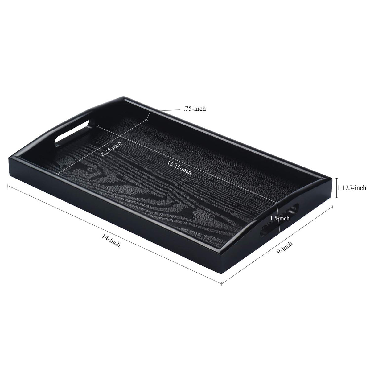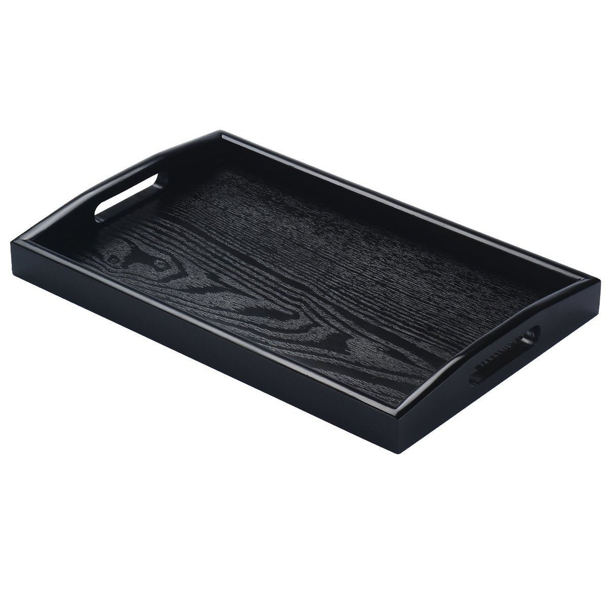 Jpcraft Rectangle Wooden Serving Tray Breakfast Tray With Handles, Black, 14 By 9-Inch