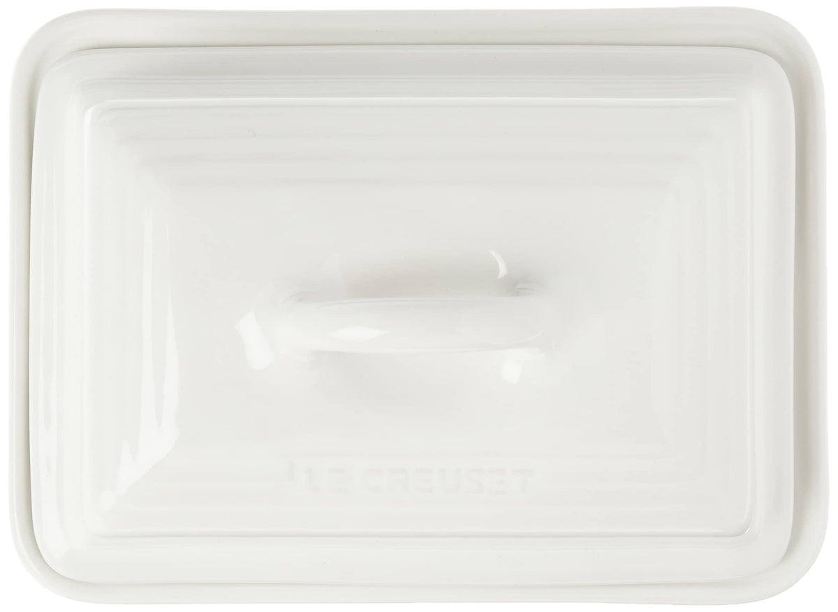 • Q: What is the size of the Le Creuset Stoneware European Butter Dish? A: The Le Creuset Stoneware European Butter Dish is designed to hold two sticks of butter, making it ideal for standard butter sizes.