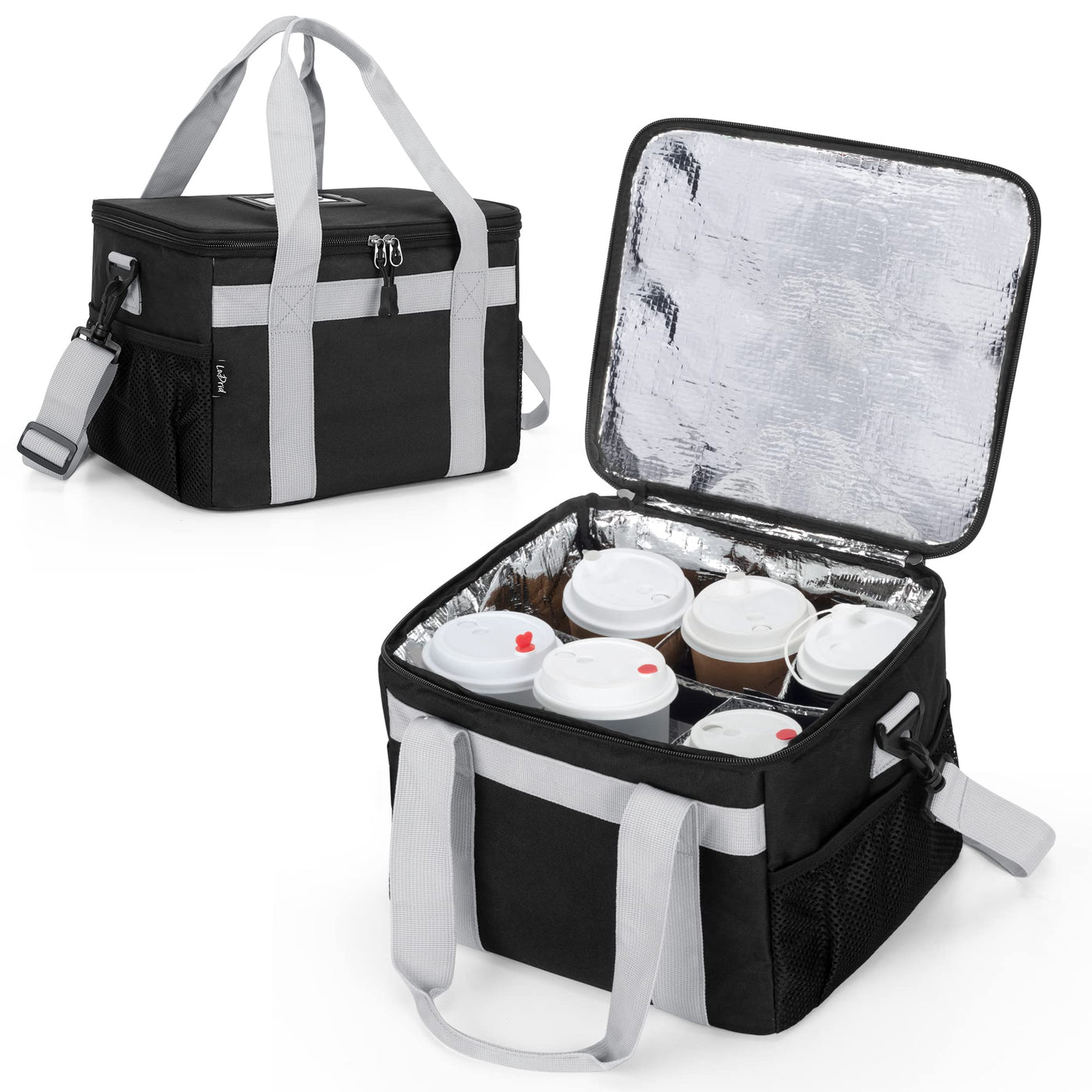 Lodrid Reusable 6 Cups Drink Carrier For Delivery With 2 Handles, Insulated Cup Holder Caddy With Removable Dividers And Shoulde