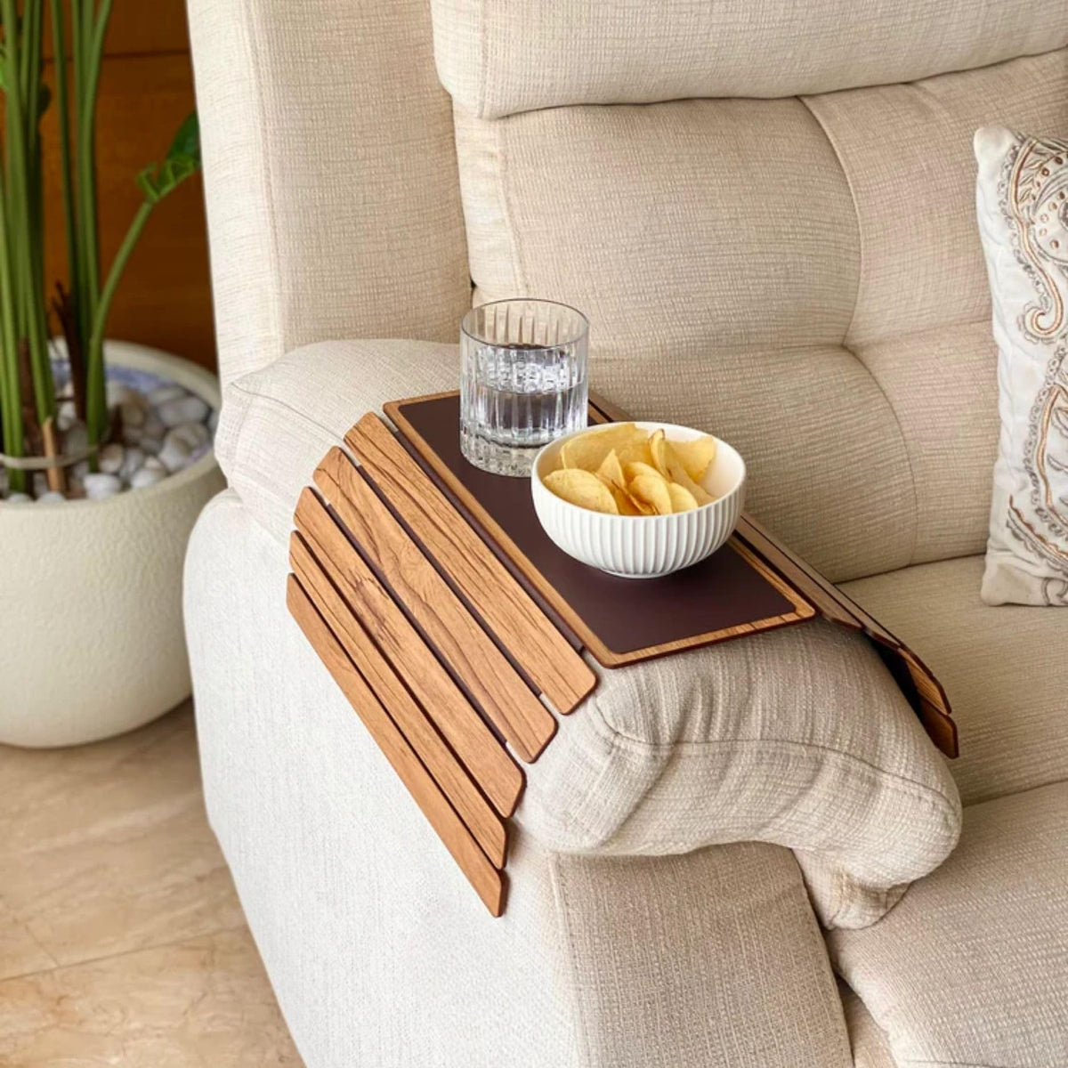 Mason Home Sofa Armrest Tray - Light Brown Full Grain Bamboo Wood With Anti Slip Pad | Dining Tray | Home & Office Dcor | Furnit