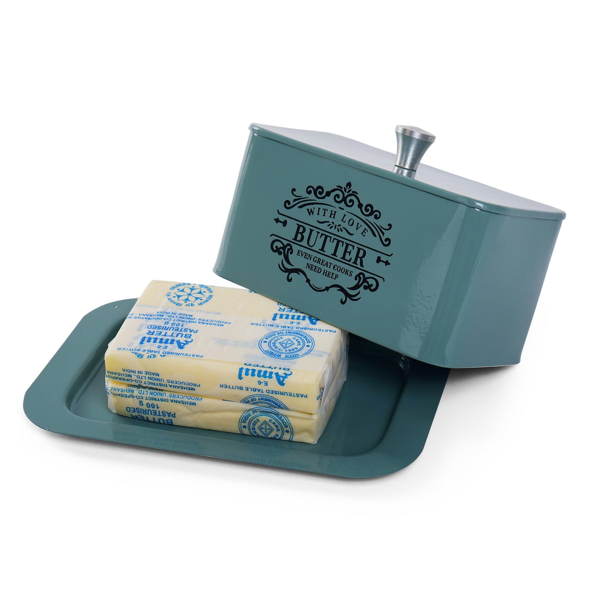Mild Steel Butter Dish With Lid, Butter Box For Fridge, Modern & Minimal Kitchen Serveware, Breakfast Serveware, Butter Pot Durable & Unbreakable (Moss Green)