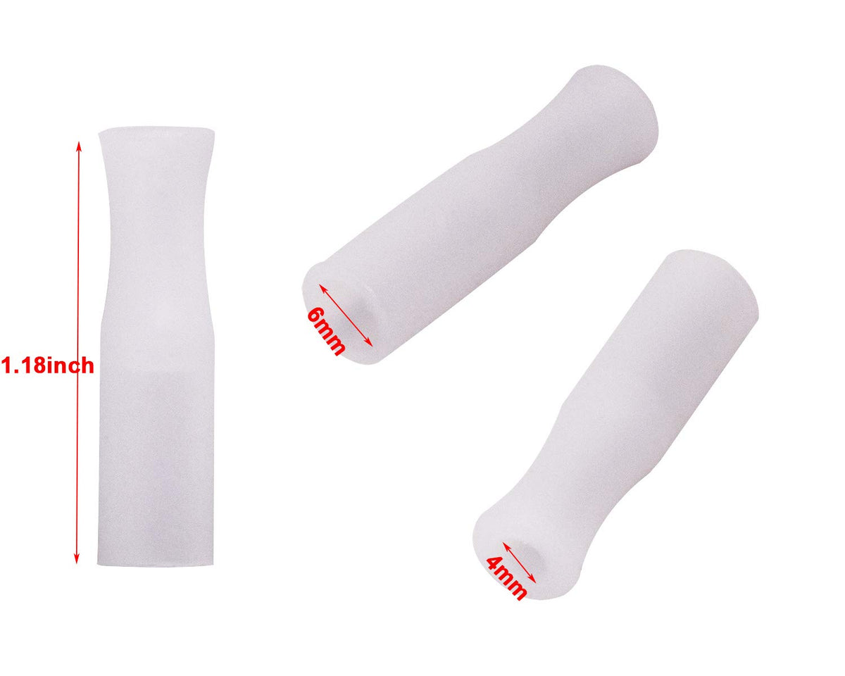 - Q: What are the dimensions of the silicone straw tip covers? A: The Regular size covers measure approximately 3 centimeters in length and fit straws with an inside diameter of 0.4 centimeters or 0.6 centimeters, suitable for 6 millimeter stainless steel straws. The Large size covers are about 3.6 centimeters long and fit straws with an inside diameter of 0.8 centimeters, compatible with 8 millimeter stainless steel straws.