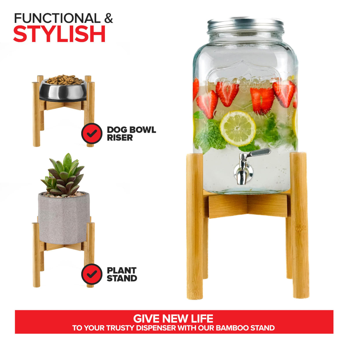 - Q: Can this stand be used for purposes other than holding a water jug? A: Absolutely! The adjustable stand can also be used to hold houseplants or as a riser for dog bowls when not in use for beverage dispensing.