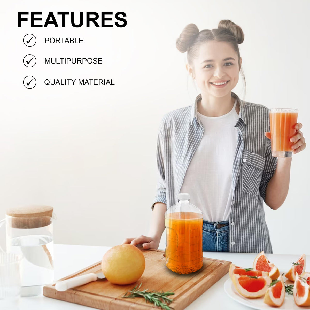 Mt Products 64 Oz Empty Clear Pet Plastic Juice Bottles With Tamper Evident Caps Set Of 4 Bottles And 4 Caps - Made In The Usa