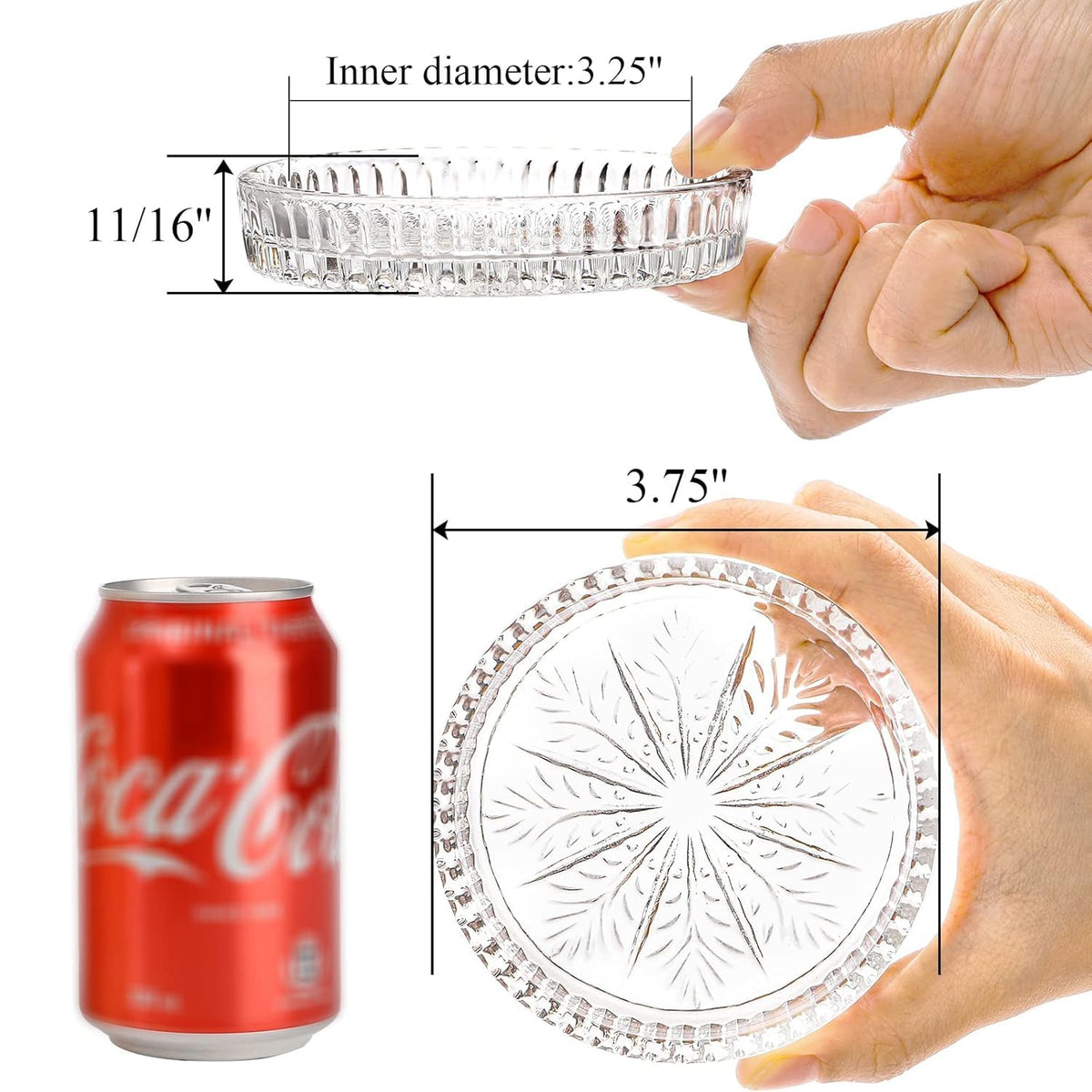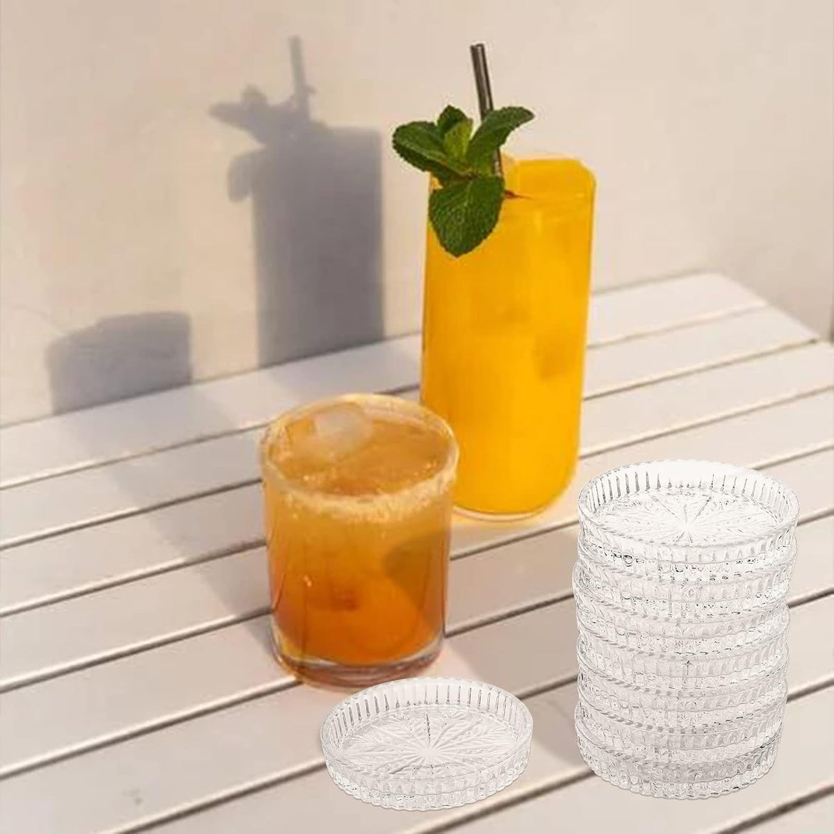 Ragyula (Set Of 6) Round Glass Drink Coasters, Crystal Coasters Decorative Glass Plates Clear Glass Coasters For Mugs, Cups, Din