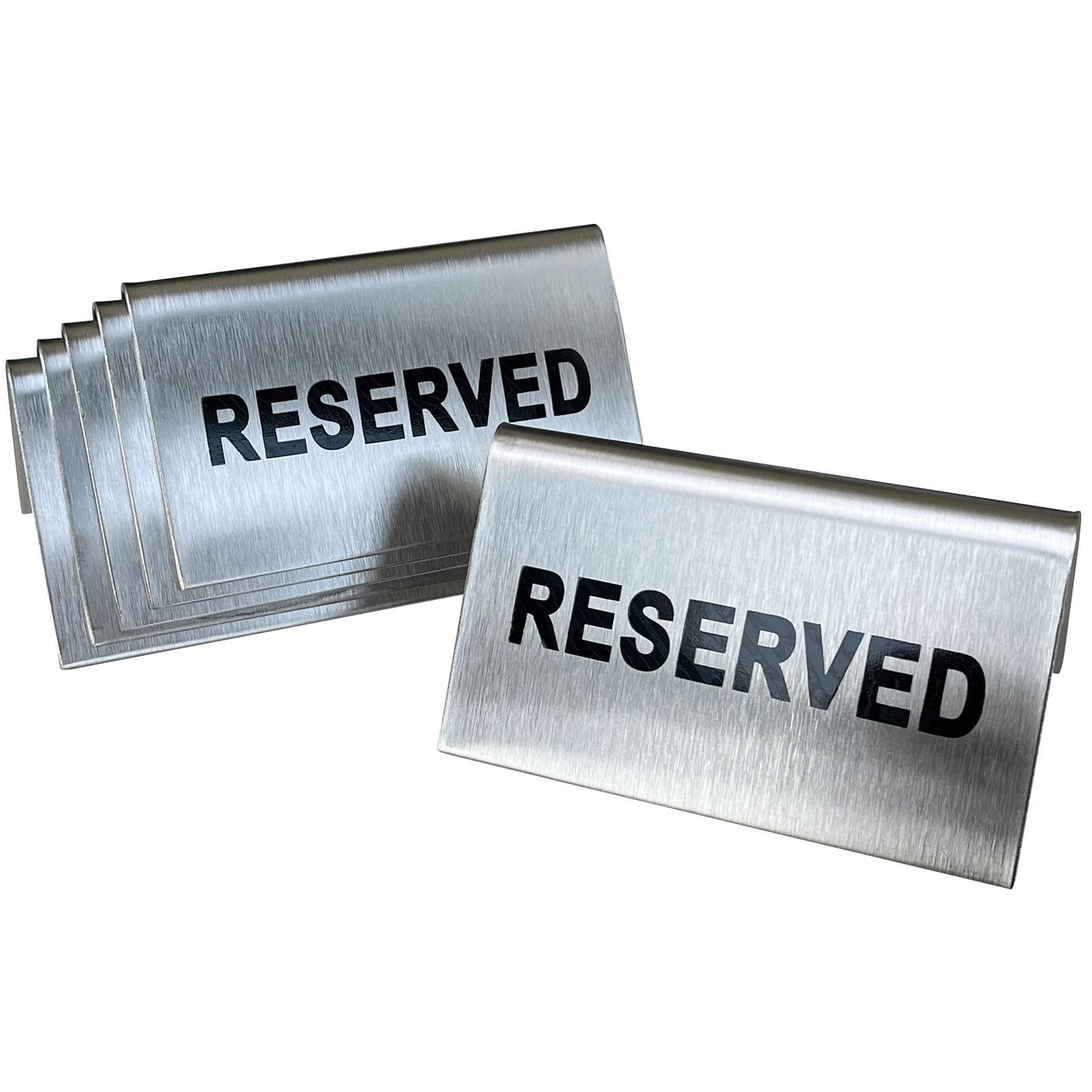 - Q: How many table signs are included in a pack? A: Each pack includes 6 Reserved Table Signs.